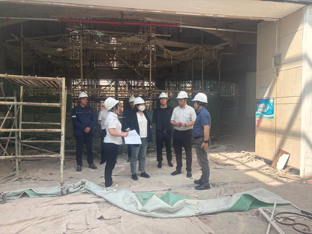 副总经理李季深入项目施工一线,实地察看了大堂拆除、疏散楼梯、地板加固等相关情况。他指出整个维修改造项目要做好成本和质量控制,要注重施工安全,在节日期间做好值守和施工进度安排工作,确保施工质量和施工安全。