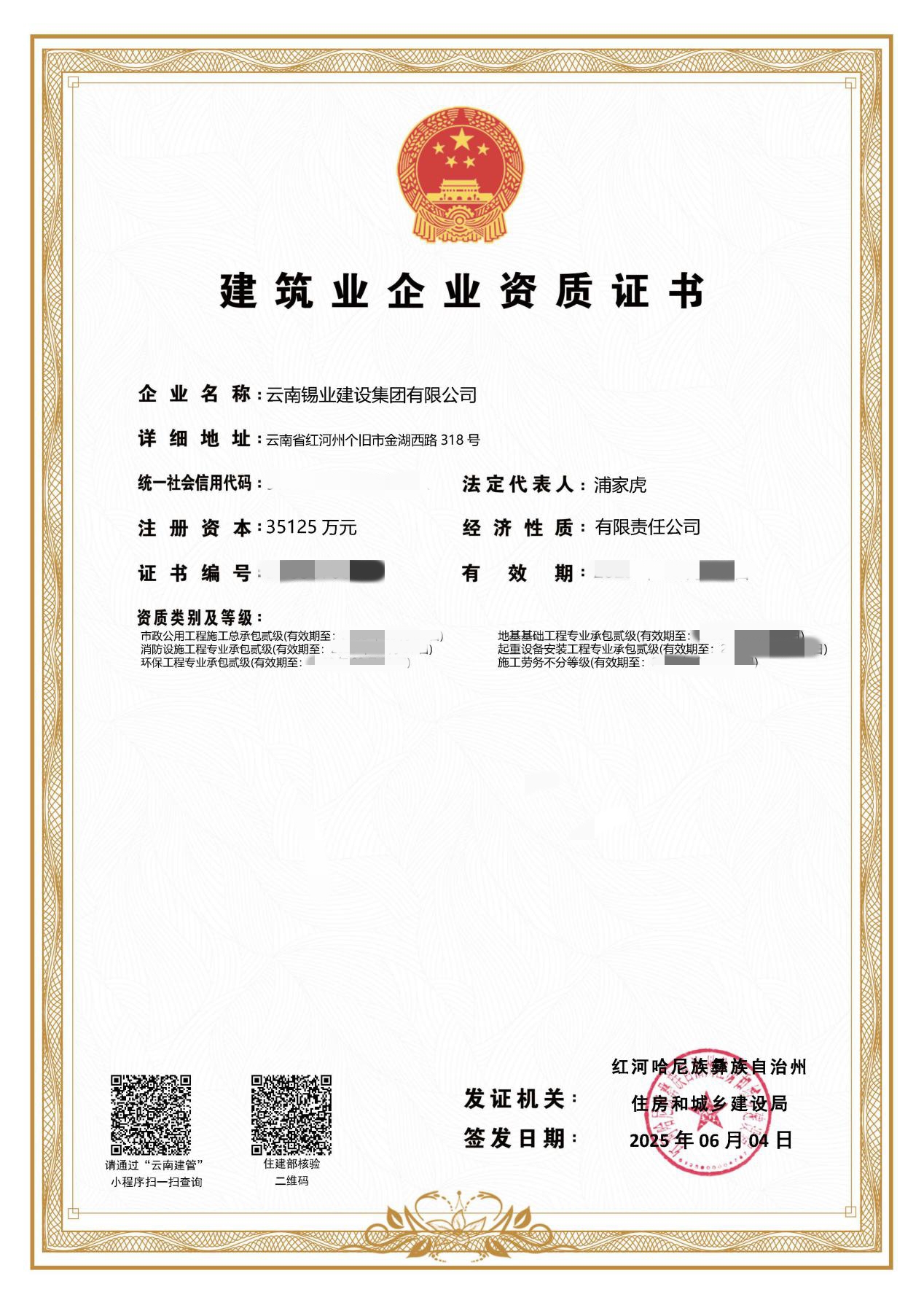 近日,锡都实业公司下属单位云锡建设集团有限公司2025年度资质延续工作传来捷报,其市政公用工程施工总承包贰级、起重设备安装工程专业承包贰级、地基基础工程专业承包贰级、环保工程专业承包贰级四项资质顺利通过审核,成功延续。此次资质延续不仅彰显了公司在工程建设领域的深厚积淀,更为企业进一步开拓市场、提升行业影响力提供了坚实保障。