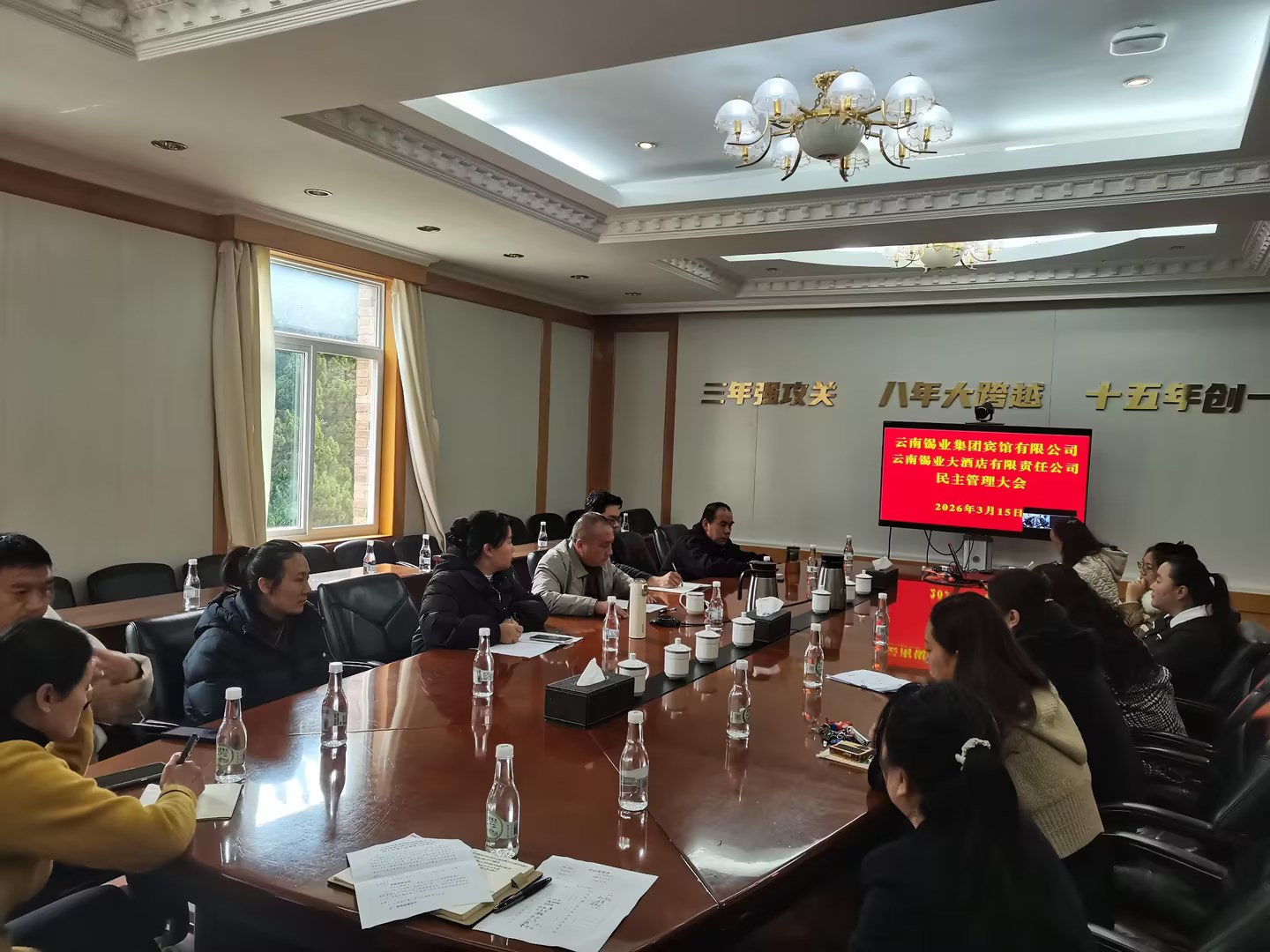3月15日,云南锡业集团宾馆有限公司、云南锡业大酒店有限责任公司民主管理大会隆重召开。会议全面总结了过去一年在组织建设、生产经营、改革创新、民生保障、职工权益维护等方面的工作成效,客观分析了当前发展面临的机遇与挑战,并就下一阶段重点工作思路、发展目标、民生举措向全体代表进行详细通报,让职工全面知晓宾馆(大酒店)2026年工作计划及发展方向,切实保障职工的知情权、参与权、表达权、监督权。(王丝丝)