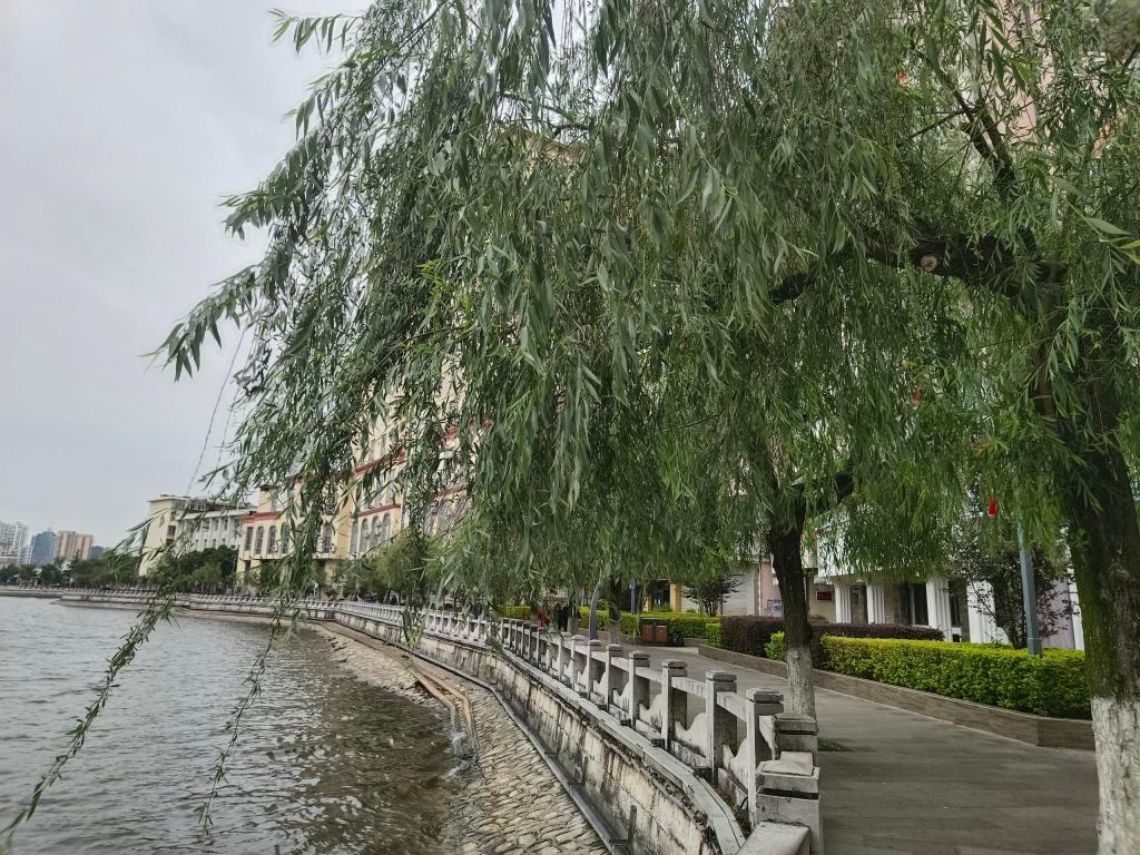 现在的柳树的枝叶一下垂遮了我的眼帘,让我注目,让我在乎。顿时,我想起这柳树是我们中华大地上土生土长的树种,它在唐诗宋词元曲里早已“摇曳惹风吹,临堤软胜丝”,把独特的形象和品格种植在诗句和丹青里。清朝的学者李渔说:“柳贵乎垂,不垂则无柳;柳贵乎长,不长则无婀娜”。“垂”是孝敬的品格,“长”是美好的心灵向往。“此夜曲中闻折柳,何人不起故乡情”李白的诗句也在提醒走遍天涯海角,旅居海外的游子,让他们看到柳树、柳枝时,就联想起故乡,不忘根本,因为柳树是中国的故乡树啊。