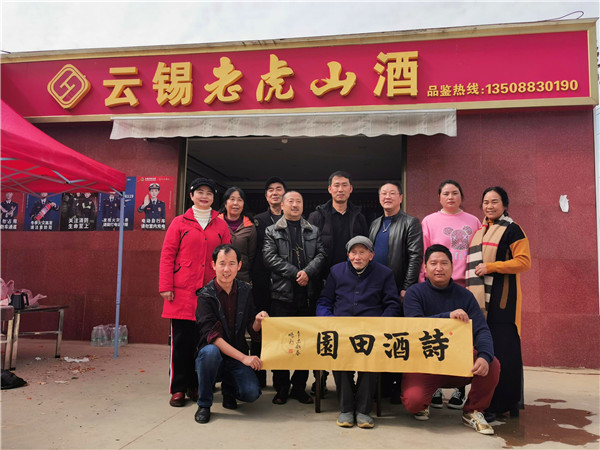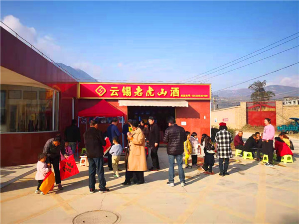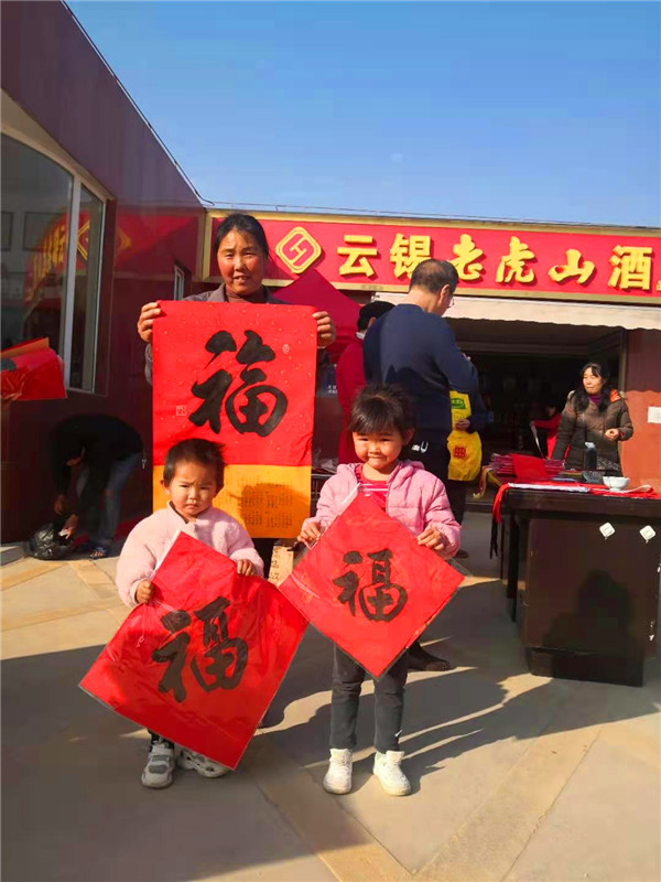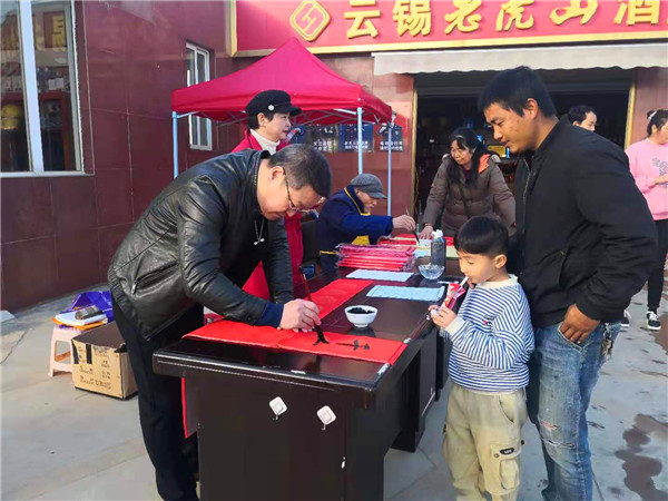 1月30日,迎着冬日朝阳,老虎山酒业公司与戴家庄村委会举行联谊活动,特邀本地书法家在酒厂大门口为来往村民免费书写春联,共同营造出一片欢乐祥和的节日气氛。