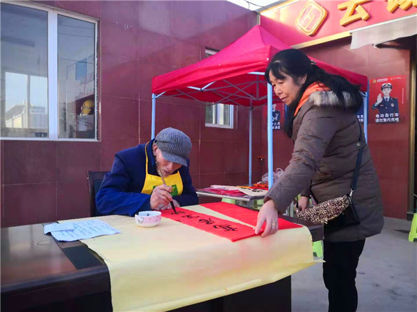 本次活动邀请到的八位书法家中,有退休工人也有退休教师,其中的王志安老人已90余岁高龄;面对纷至沓来的村民渴望的眼神,书法大师们尽情挥毫泼墨,一副副精彩的墨宝,一句句寓意美好的春联,为来往行人送上了一道道精神文化大餐,给即将到来的新春佳节增添了浓浓的春意。
