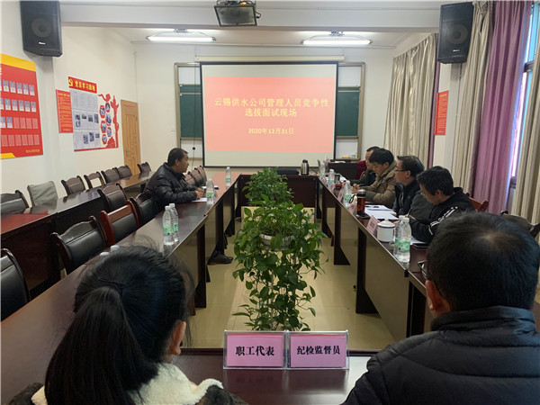 12月31日,供水公司在党员活动室开展竞争性选拔管理人员的面试工作,进一步推进和深化内部人事制度改革。