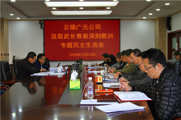 12月14日,广元公司召开领导班子汲取武长青案深刻教训专题民主生活会。控股公司党委副书记、总经理程睿涵到会指导。广元公司党委书记、董事长李林主持会议并作小结。广元公司党政领导班子成员参加会议。