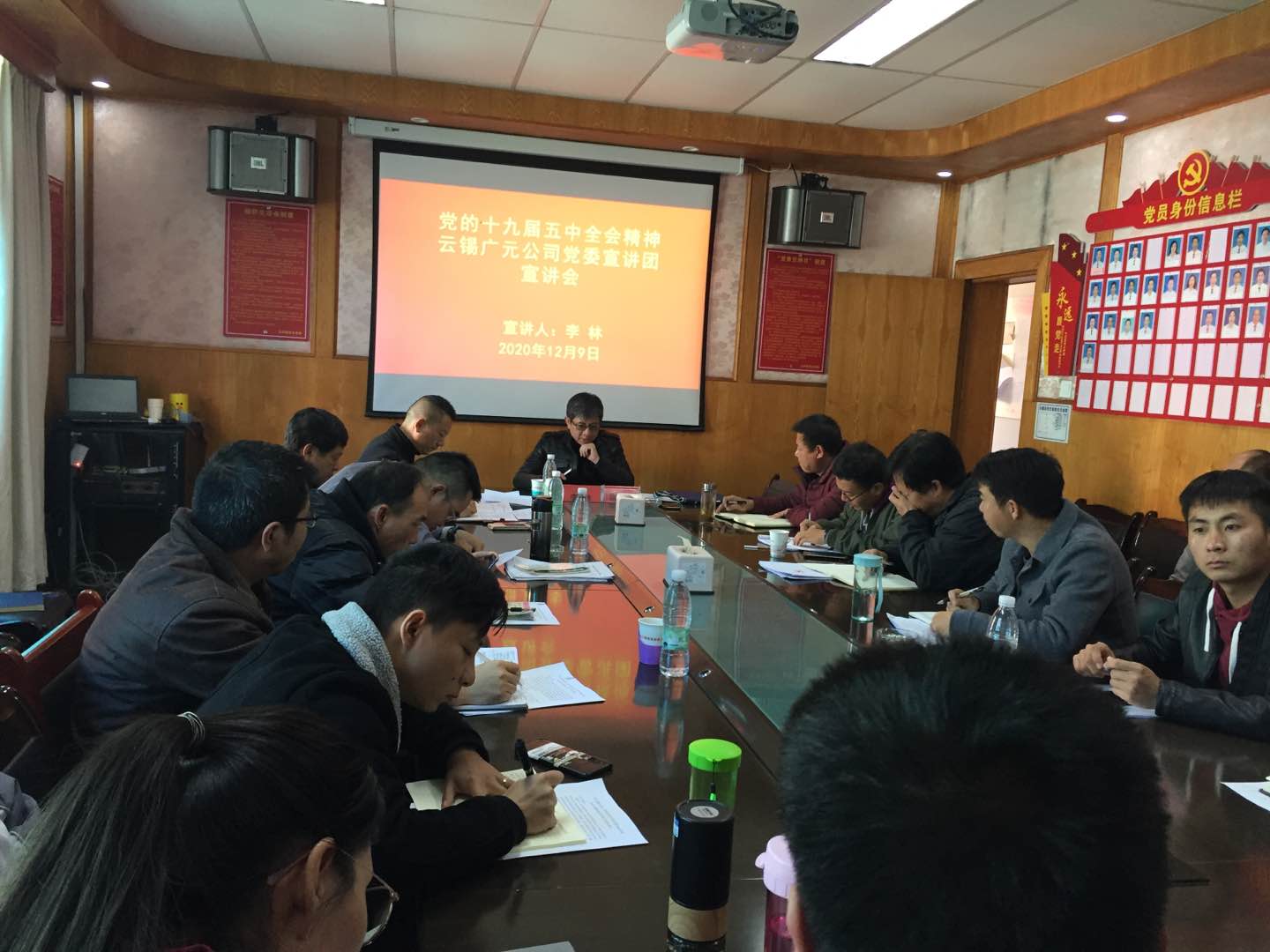 12月9日,广元公司党委书记、董事长李林到云建安公司宣讲十九届五中全会精神。