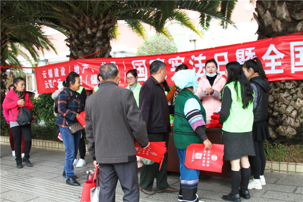12月4日,云锡广元、云锡建设(地产、龙马)和机械(锡都实业)三家公司在云锡宾馆前,共同举办国家宪法日暨全国法制宣传日法律宣贯活动。大力宣传习近平总书记全面依法治国新理念、新思想、新战略和宪法的地位、作用和主要内容,我国法治建设的辉煌成就和社会主义核心价值观。