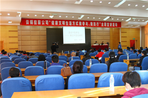 12月1日,控股公司“健康文明生活方式我参与、我践行”主题宣讲在云锡宾馆报告厅开讲。来自云锡各单位的干部职工共120人聆听了讲座。个旧电视台进行了全程摄录。