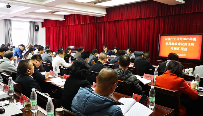 11月23日上午,控股公司党委常委、副董事长杨奕敏率党委第七考核组对广元公司开展2020年度党风廉政建设责任制落实情况进行检查考核。广元公司党政领导班子,机关部门负责人,所属单位党政领导及“两代表一委员”、职工代表共计46人参加会议。