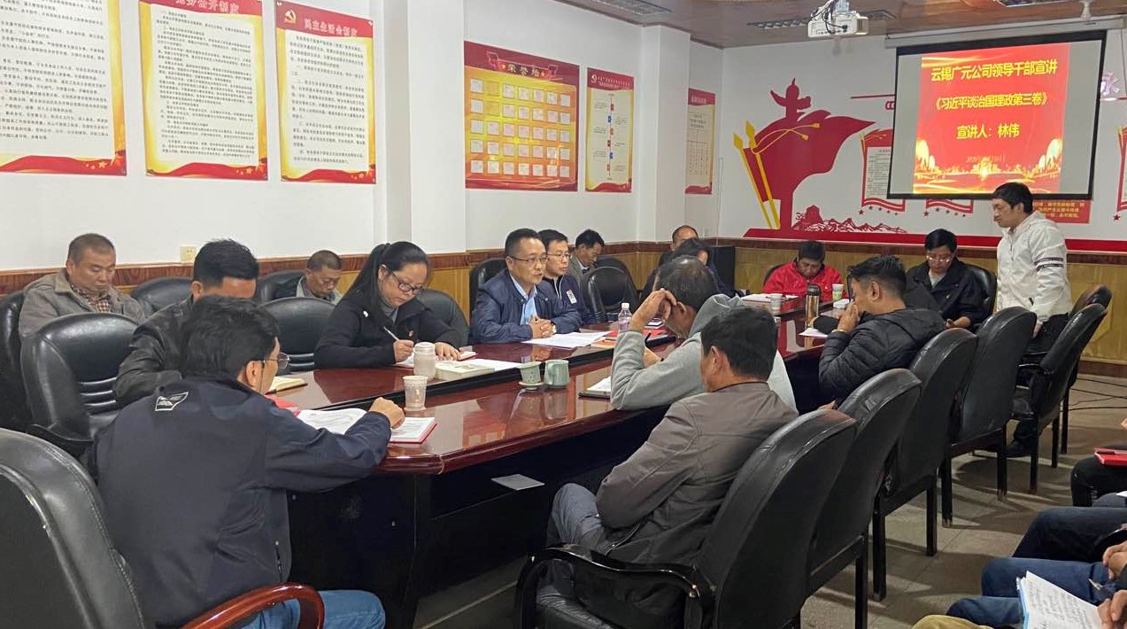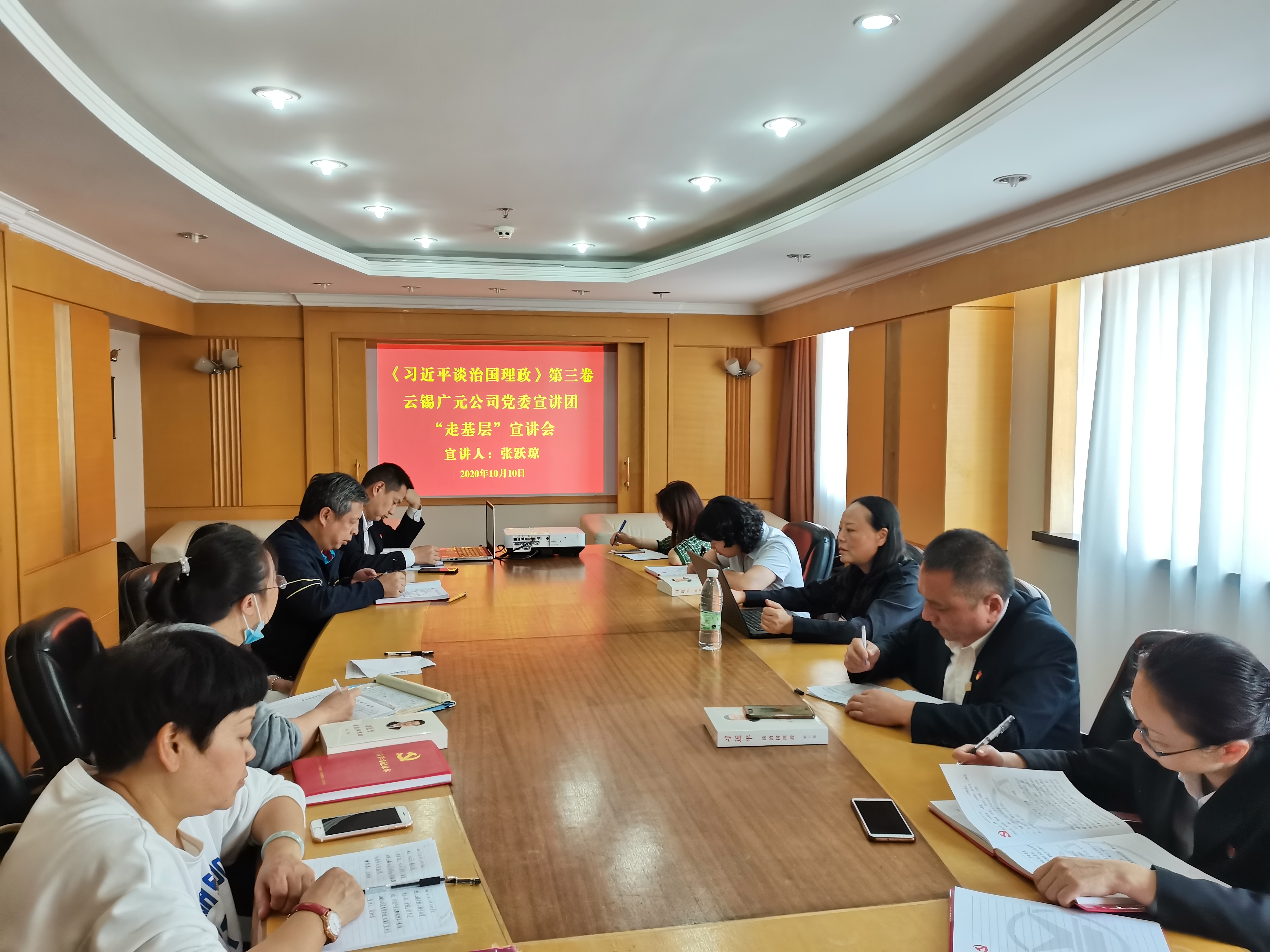 10月10日上午,广元公司纪委书记张跃琼同志到云锡宾馆开展《习近平谈治国理政》第三卷宣讲活动。