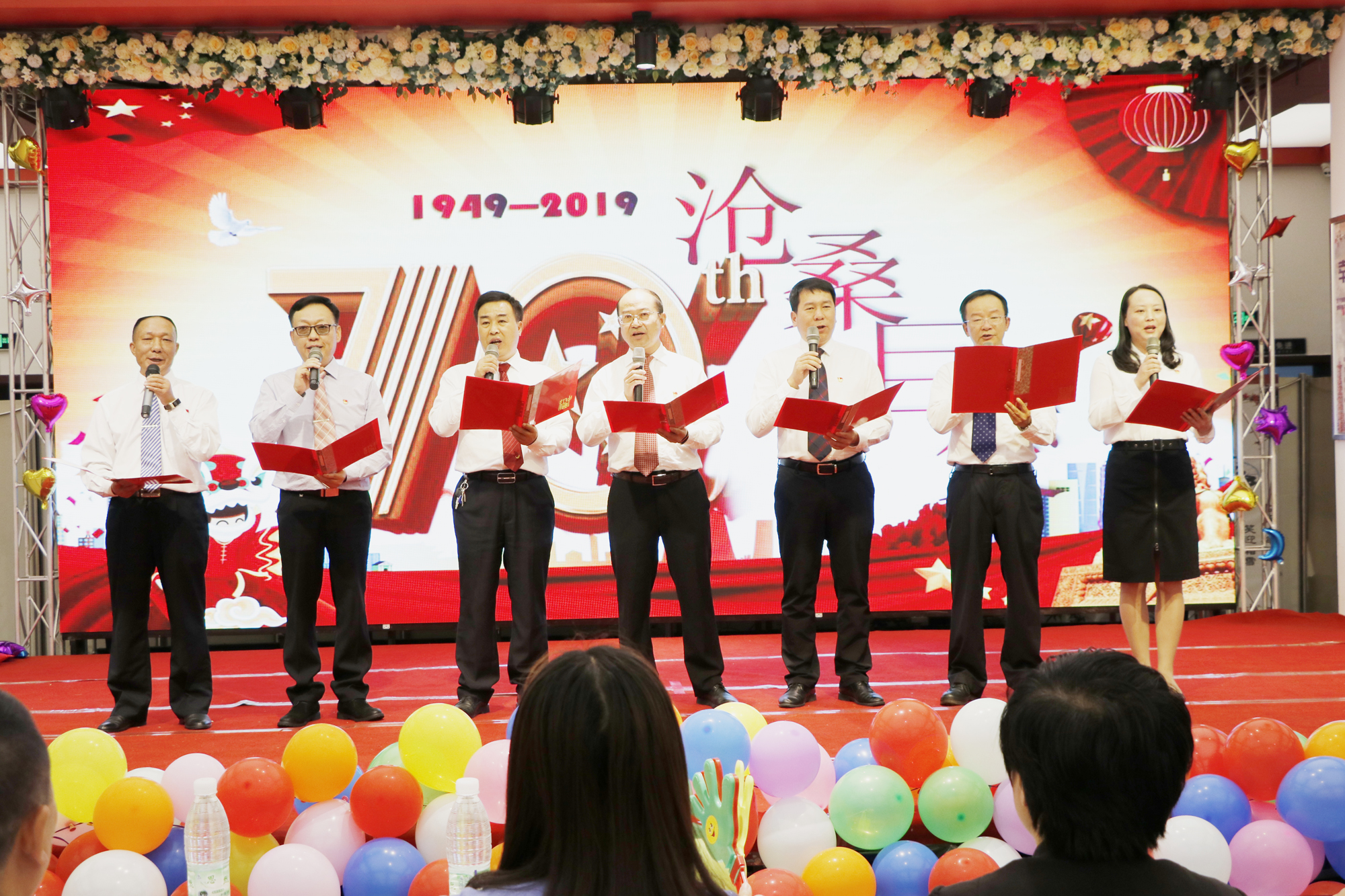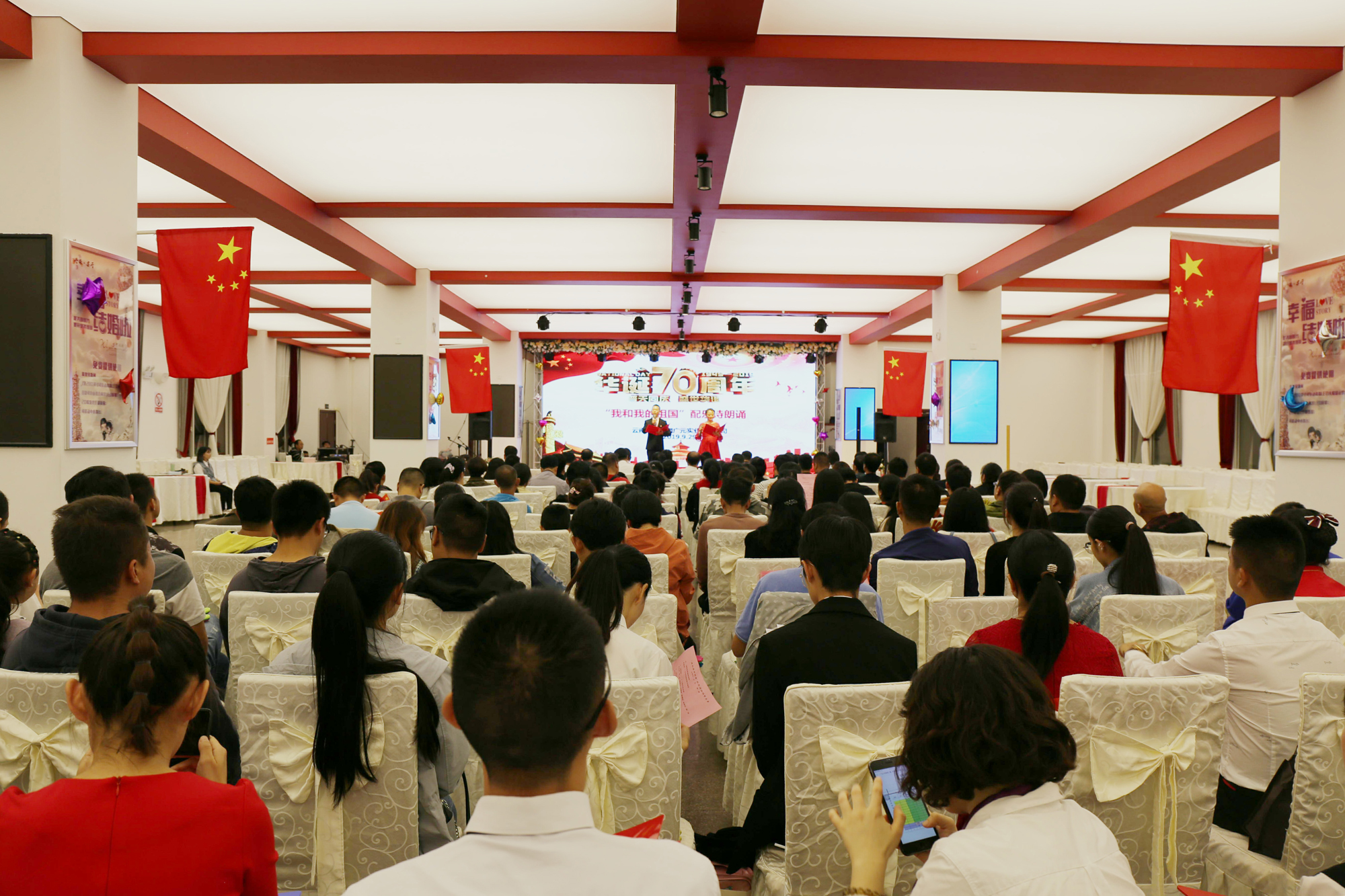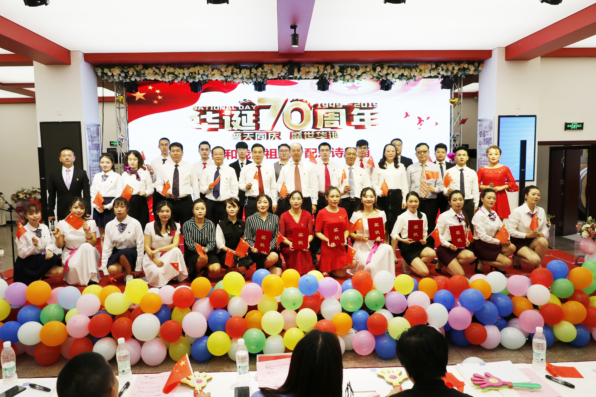 为隆重庆祝中华人民共和国成立70周年,表达干部员工对伟大祖国的热爱之情,广元公司于9月在云锡宾馆二楼举办“我和我的祖国”配乐诗歌朗诵活动。公司全体领导班子成员与大家共同喜迎国庆,用最深情的声音抒发浓厚的爱国情怀,用最美的语言歌颂最美的祖国。