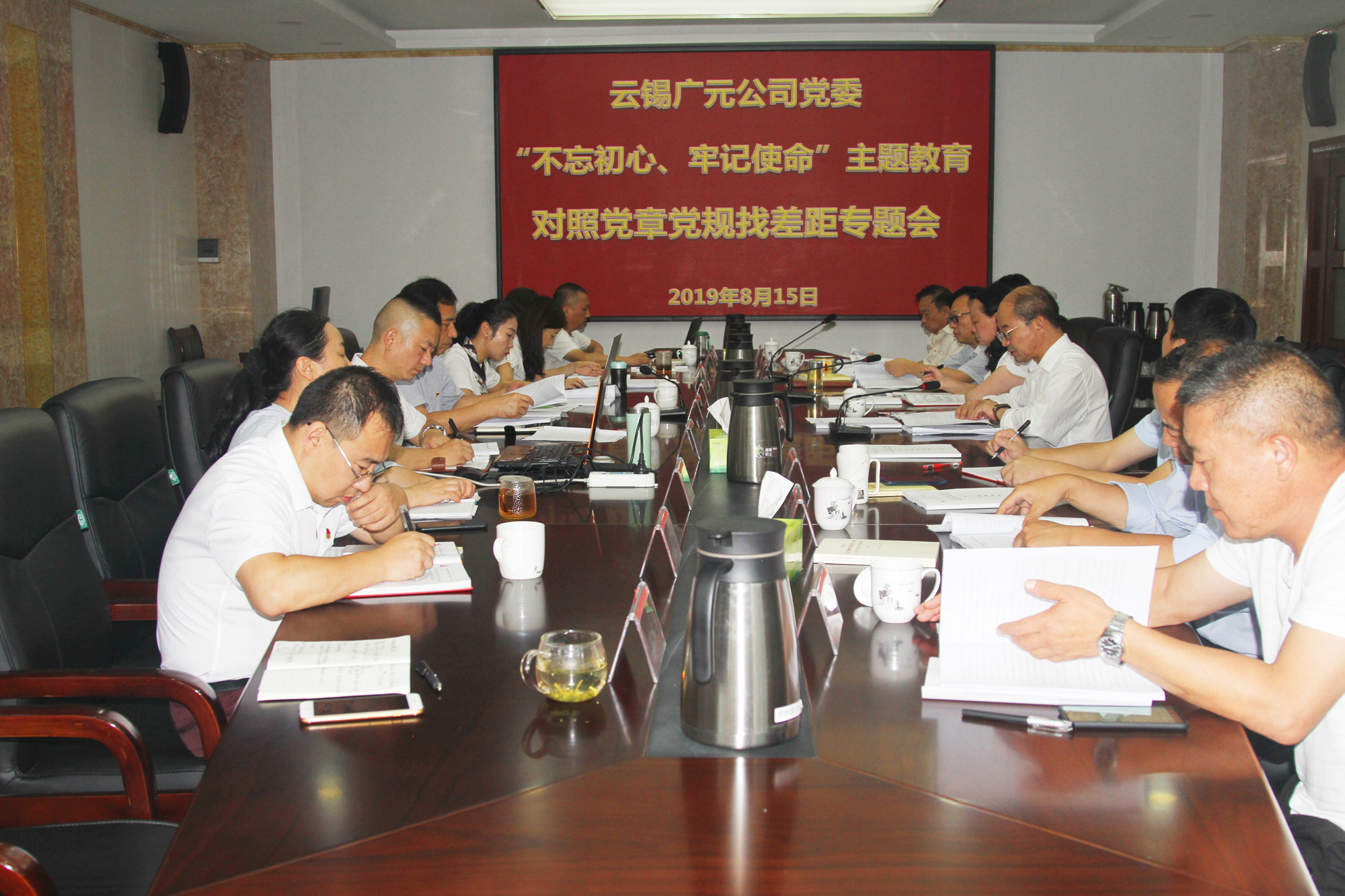 8月15日下午,广元公司召开“不忘初心、牢记使命”主题教育对照党章党规找差距专题会,控股公司主题教育第四指导组副组长谷建明到会指导。会议由广元公司党委书记、董事长许祖英主持。