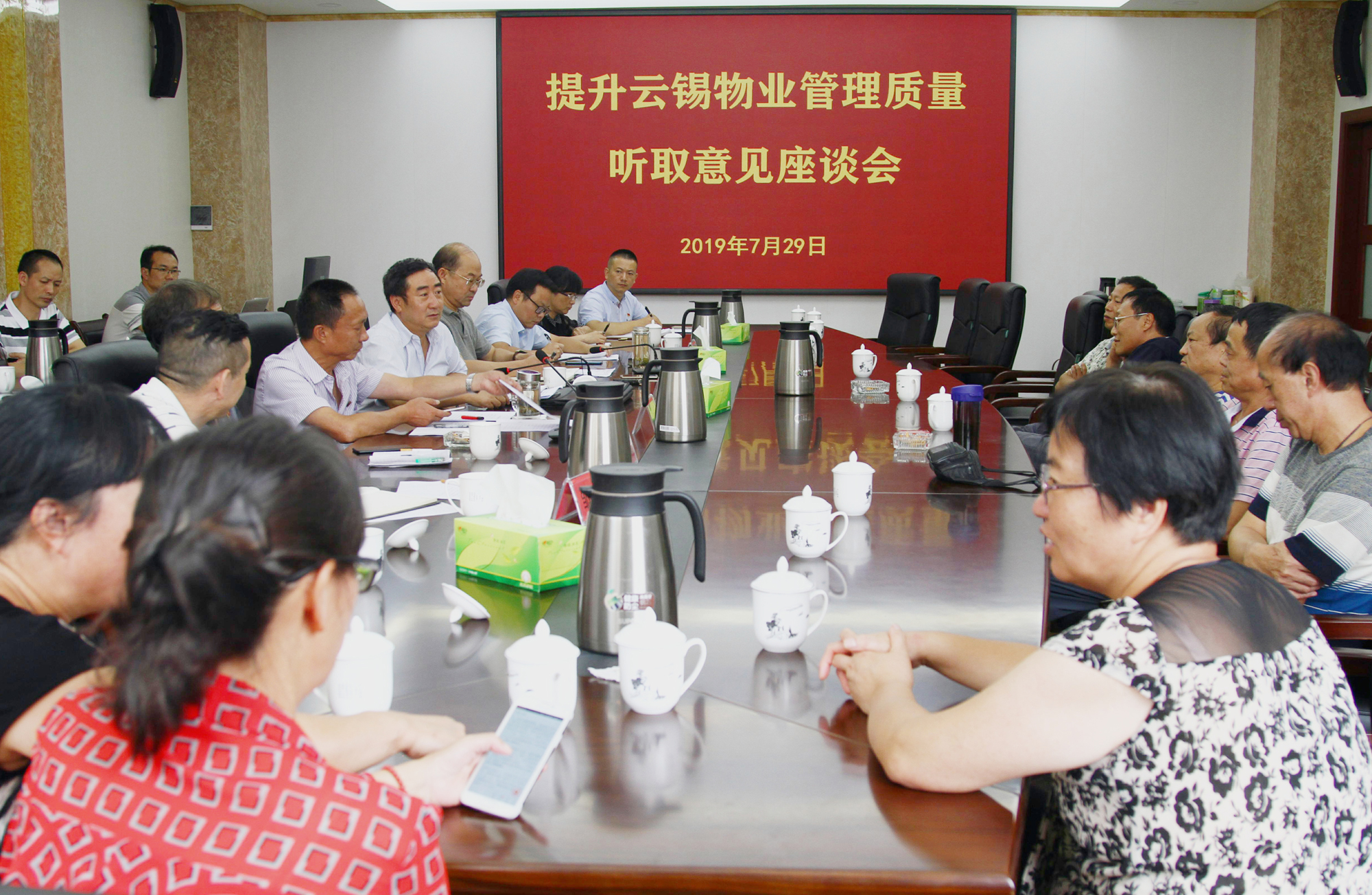 7月29日,控股公司党委常委、副总经理程睿涵在广元公司组织召开提升云锡物业管理质量听取意见座谈会,听取机关小区云锡新村16名住户代表的意见建议。
