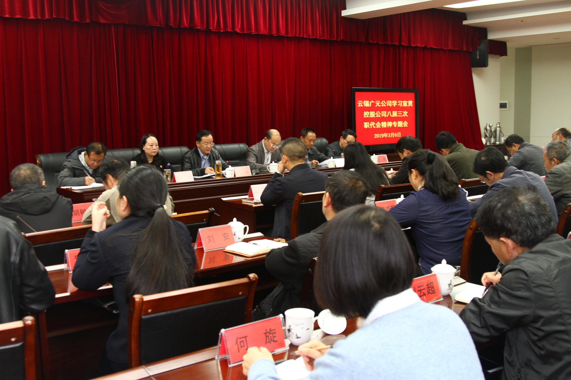 3月6日上午,广元公司召开学习宣贯控股公司八届三次职代会精神专题会,传达控股公司八届三次职代会精神,对广元公司当前和今后一个时期的生产经营和深改攻坚各项工作再安排、再部署。会议由广元公司党委副书记、工会主席刘国平主持,公司领导班子成员、各单位党政主要领导以及机关中层管理人员参加。