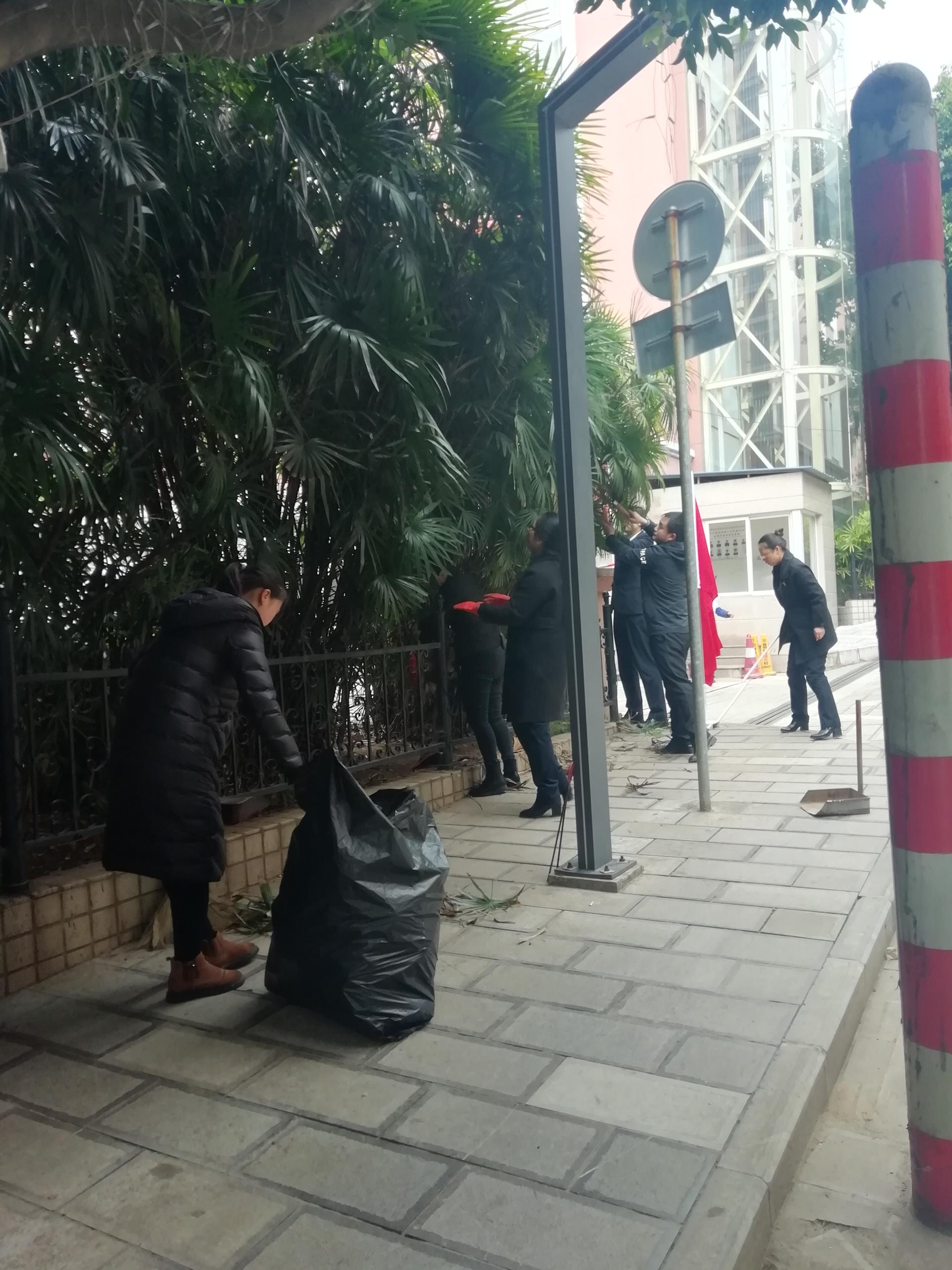 云锡控股公司“两会”、股份公司工作会和广元公司职代会将分别于2019年1月20日至25日期间在云锡宾馆召开。为确保会务接待任务圆满完成,1月18日宾馆全体党员对宾馆外围周边护栏、绿化带等进行了清扫 。宾馆党支部同时要求全体党员、团员和干部职工要切实增强责任意识,不断提升服务质量,持续保持良好的文明卫生环境,以饱满的精神面貌切实做好各项会议的会务服务。