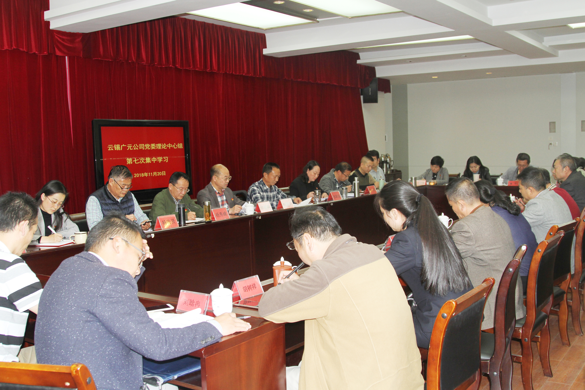 11月20日,广元公司党委理论学习中心组召开2018年第七次集中学习会,传达学习云南省委十届五次全会精神、省政府十三届二次全会精神、省委关于进一步贯彻落实中央八项规定精神以及云南省《党政领导干部安全生产责任制实施细则》等内容,重点学习研讨如何做好“双百行动”综合改革暨新时代重构企业文化。
