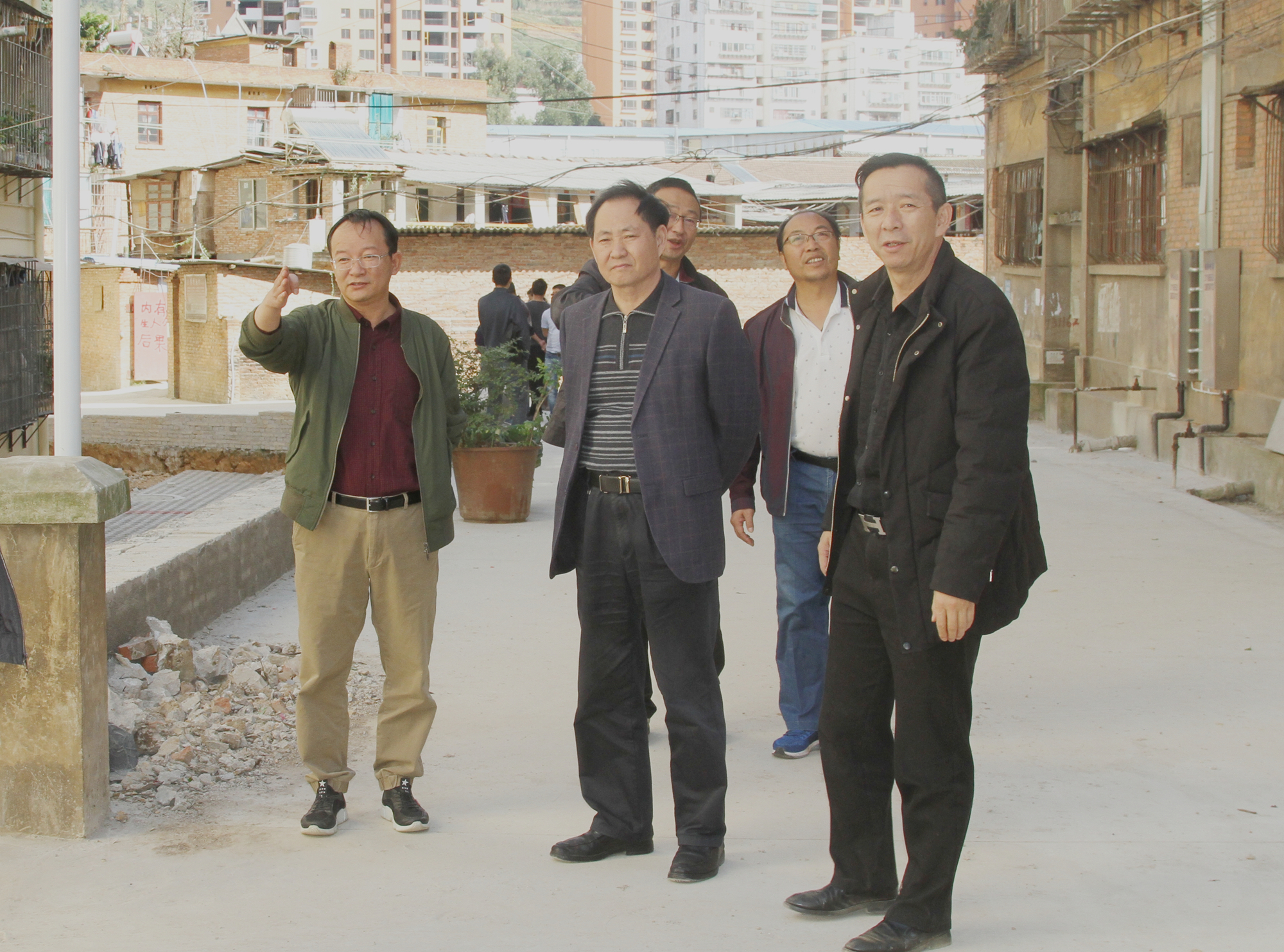 控股公司总经理助理沈裕昆、广元公司常务副总经理杨秀峰与“三供一业”项目建设各方工作人员前往德政小区、云锡机关小区、马供小区及新南苑小区实地查看供水、物业维修改造项目建设施工情况,现场协调解决项目建设中的困难。