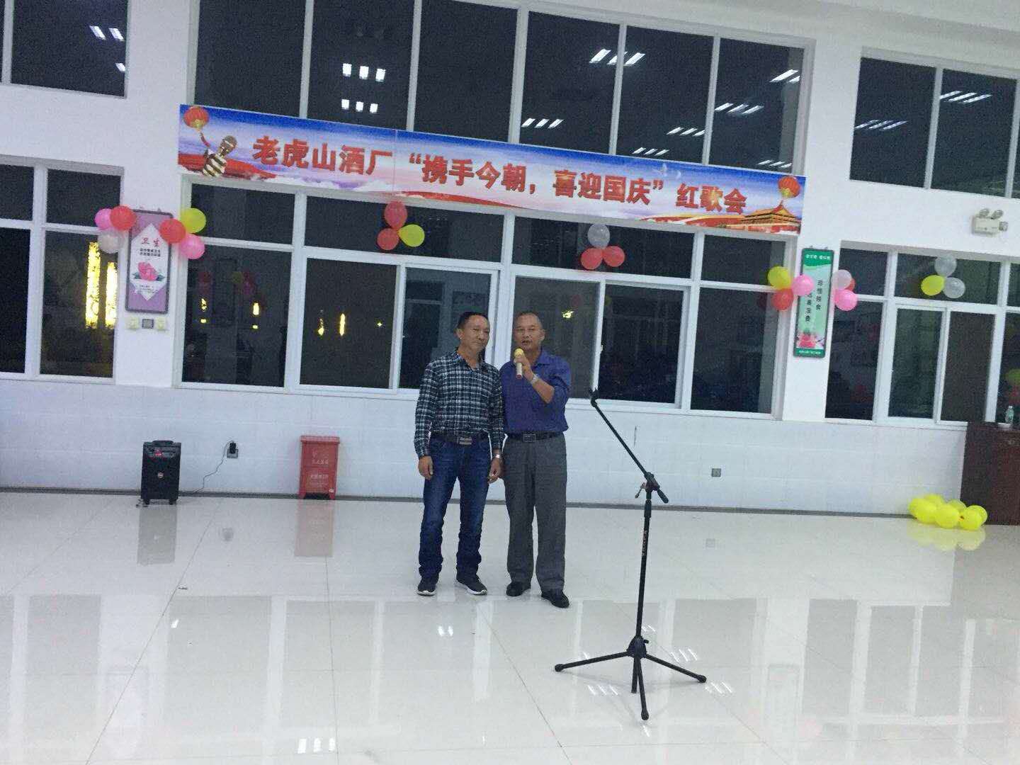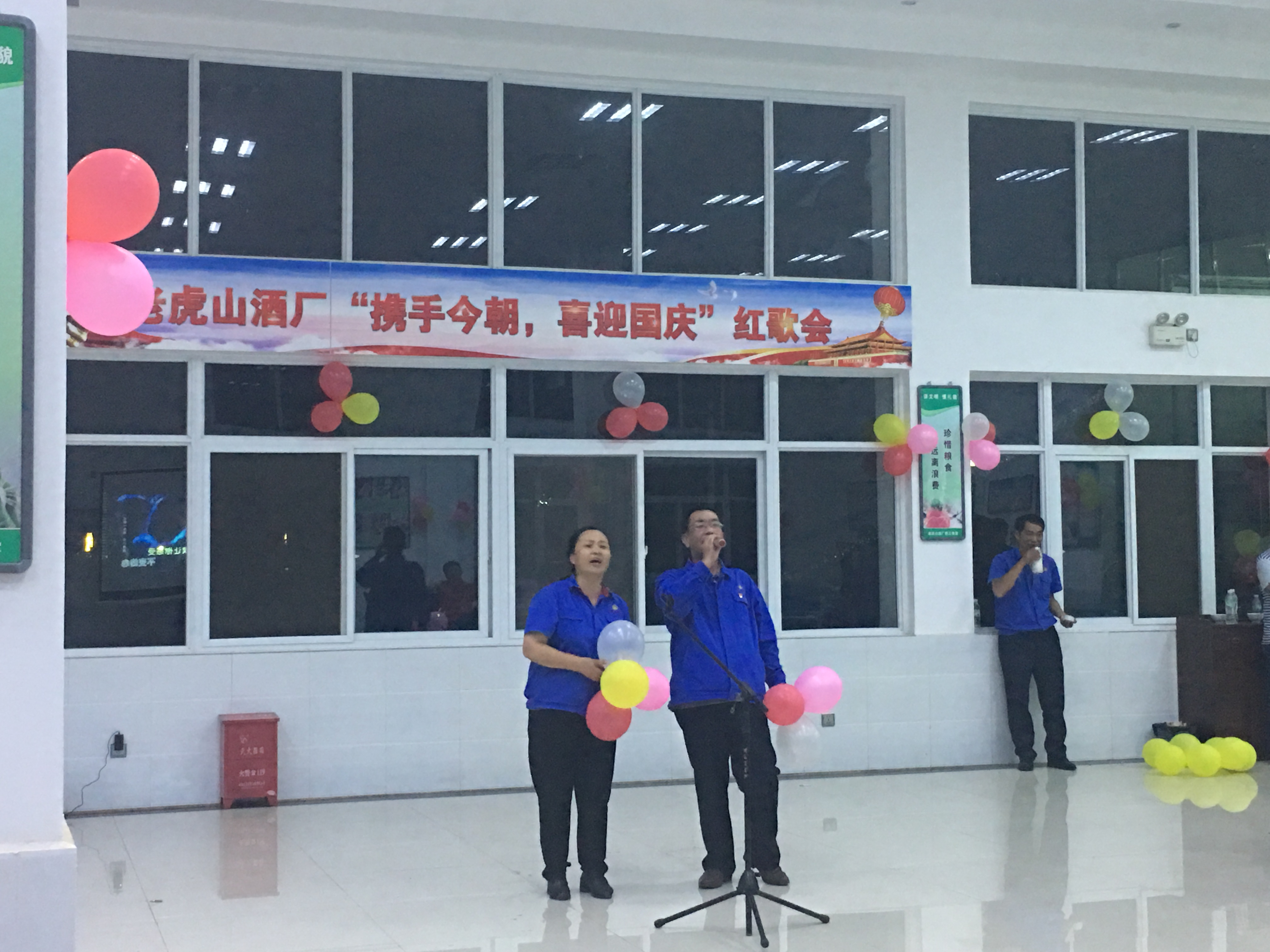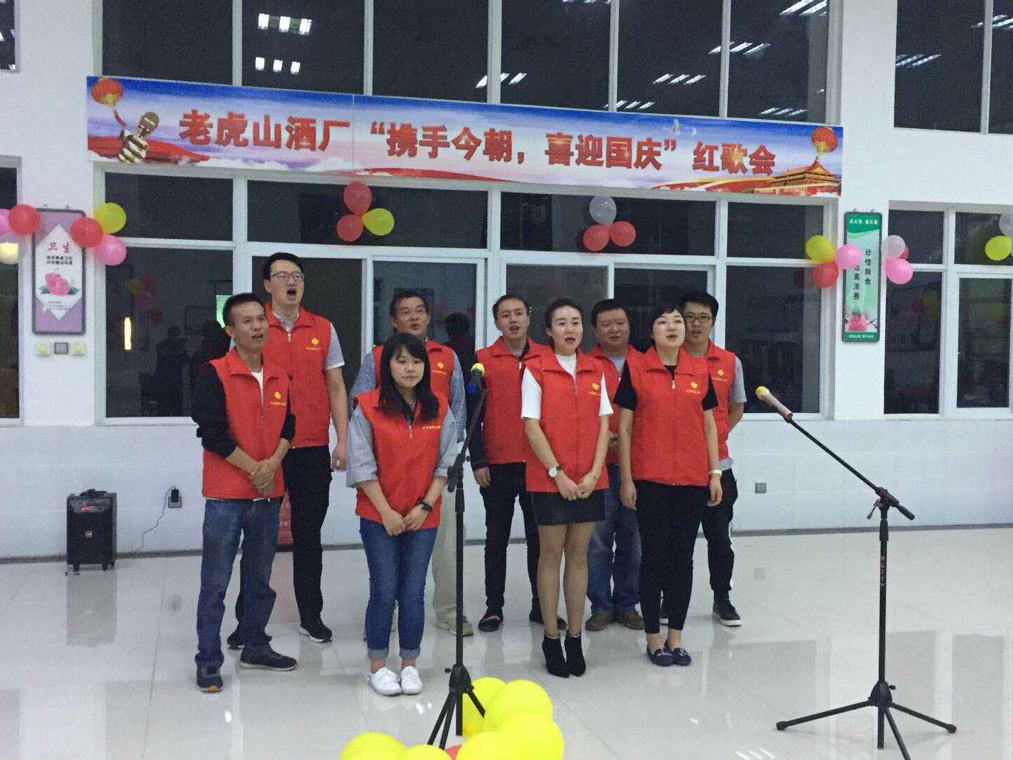 9月29日,老虎山酒厂举办了“携手今朝,喜迎国庆”红歌会,用豪迈与激情歌颂伟大的党,祝福伟大的祖国,共迎祖国69岁华诞的到来。