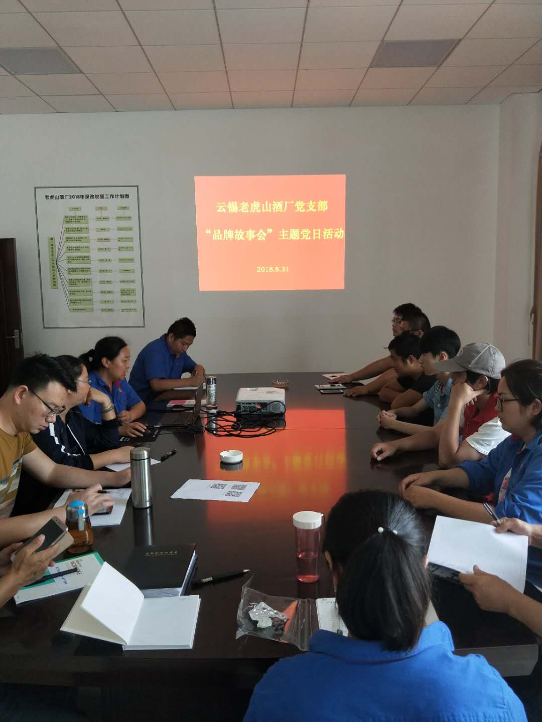 为了扩大老虎山酒厂商标品牌影响力,8月31日,老虎山酒厂党支部组织开展“讲述品牌故事”主题党日活动,酒厂党员干部职工共计18人参加。