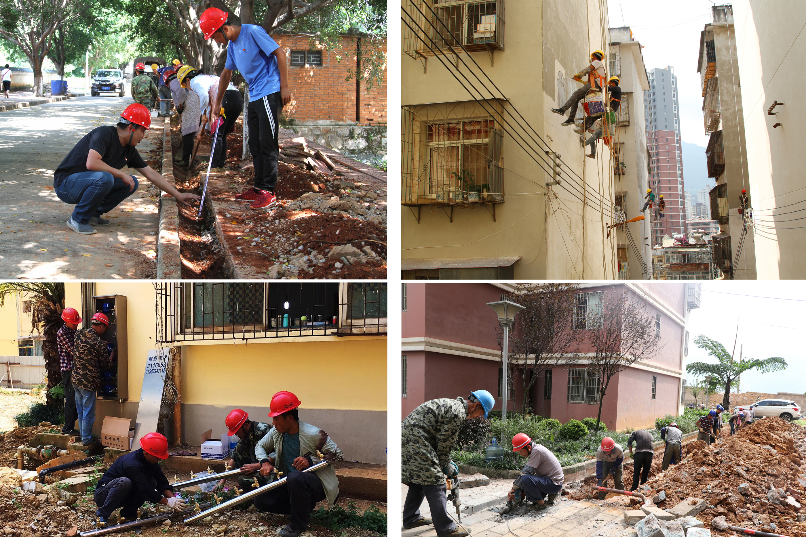 正是指挥部全体工作人员的辛苦努力,保障了维修改造项目的整体顺利实施和有序推进。2018年3月6日,云锡“三供一业”维修改造实施方案在省国资委备案,标志着项目进入实质性阶段。2018年4月8日,实现个旧市区、大屯片区、老厂卡房片区共六个标段维修改造项目的全面开工。