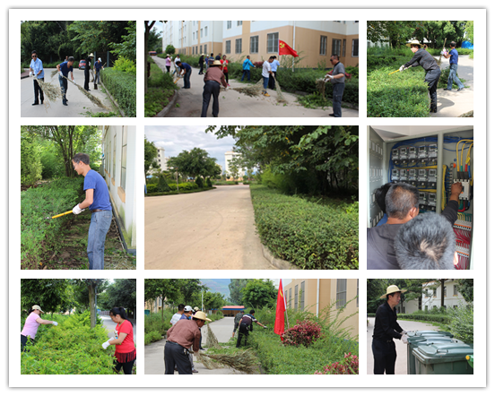 上午,在公司党总支书记的带领下,党员队伍分组清理、修剪小区绿化带,清理清运公共区域内杂草杂物,对消防设施设备进行维护和检修。尽管骄阳似火,汗流浃背,但党员同志们始终保持昂扬的精神和饱满的热情,撸起袖子埋头干,在大家的共同努力下,小区环境面貌焕然一新。