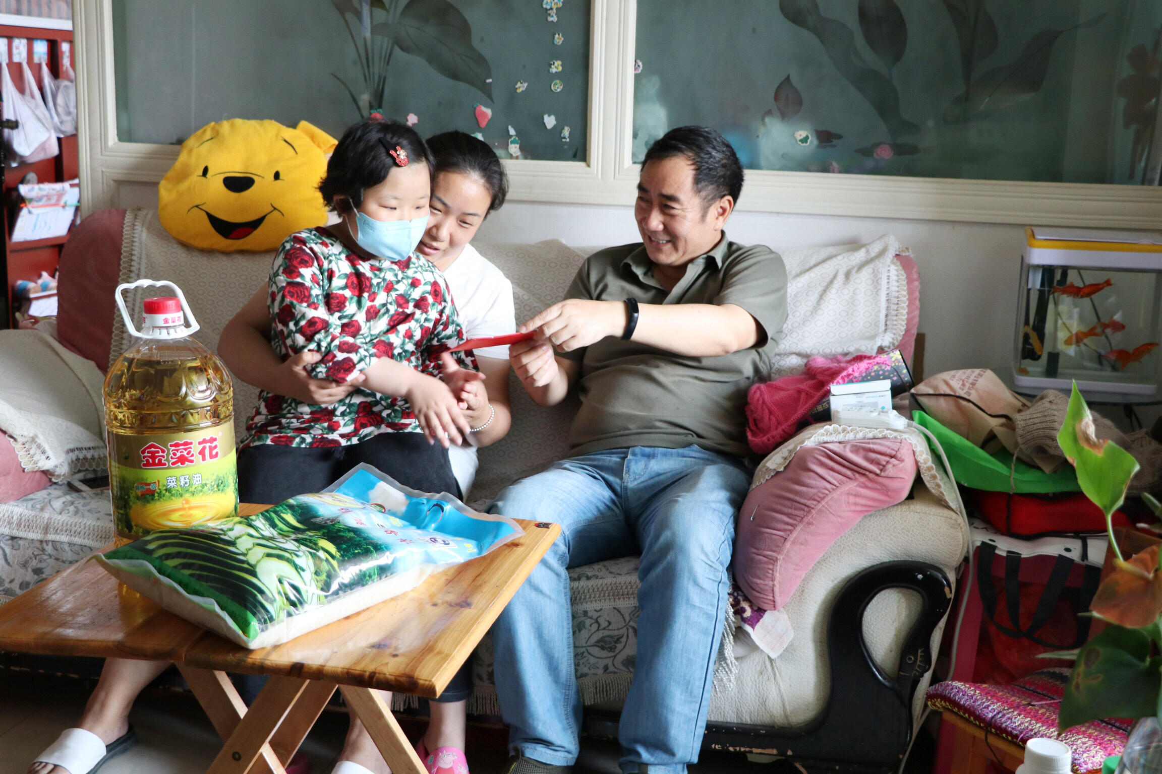 程睿涵首先来到王雪家中,详细询问王雪女儿目前的身体恢复状况,了解他们的生活和就医情况。王雪的女儿于2016年11月确诊为急性淋巴细胞白血病,为了帮女儿治病,已申请放长假两年,高昂的治疗费让这位单亲妈妈原本拮据的生活雪上加霜。程睿涵鼓励王雪家人积极生活,乐观面对,祝愿孩子早日康复,健康快乐地学习、生活。