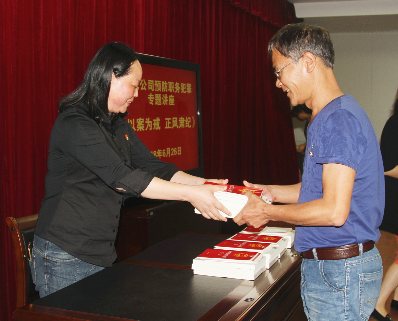 在预防职务犯罪专题讲座上,个旧市监察委委员汤云涛应邀为党员干部授课。汤云涛围绕《以案为戒、正风肃纪》中心主题,列举了发生在云锡职工身边的老厂“2·24"案件、马矿“4·12"等严重违纪违法案件,结合自己多年的纪检监察工作经验,深入浅出地分析了违纪违法案件给企业、个人及家庭带来的危害,并就新时期反腐败工作面临的新形势、发生的新变化,以及十九大以来中央对于反腐败工作提出的新要求进行了深入解读。讲座结束后公司纪委还向各党支部赠送了70余本廉洁文化书籍。