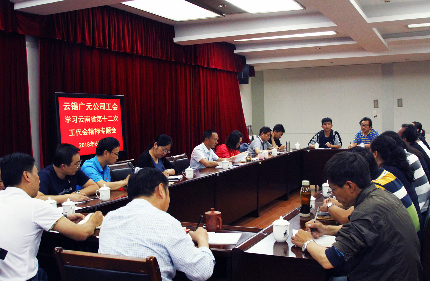 6月5日,广元公司工会组织工会委员、各部门工会主席及部分职工代表30余人,传达学习云南省总工会第十二次代表大会精神。