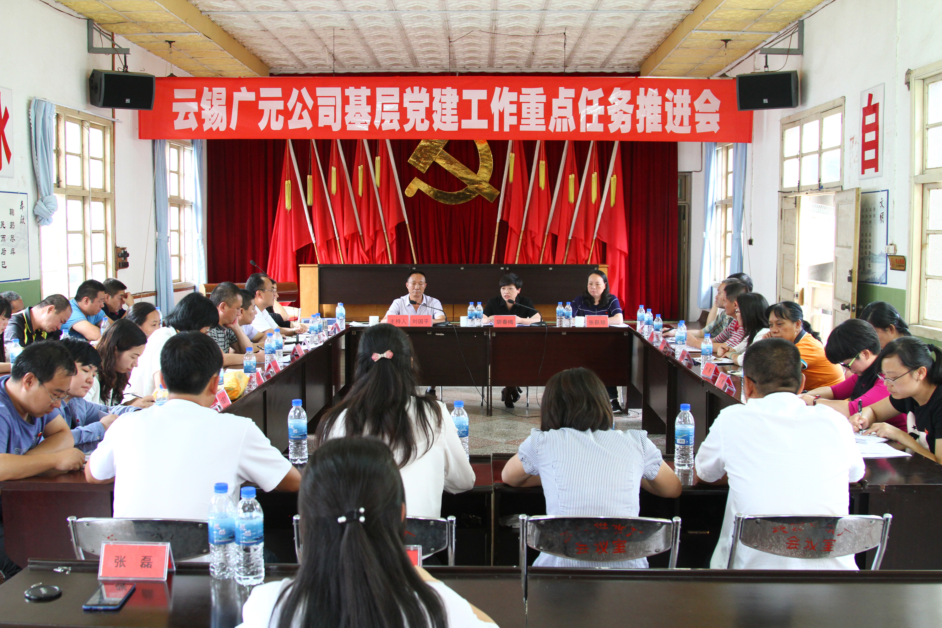 7月27日,广元公司在供水公司五楼会议室召开基层党建工作重点任务推进会,及时传达控股公司2017年基层党建工作重点任务推进会议精神,对全国全省国有企业党的建设工作会议精神重点任务分解落实作分解说明,并在基层现场进一步查找所属各党支部党建工作存在的主要问题。