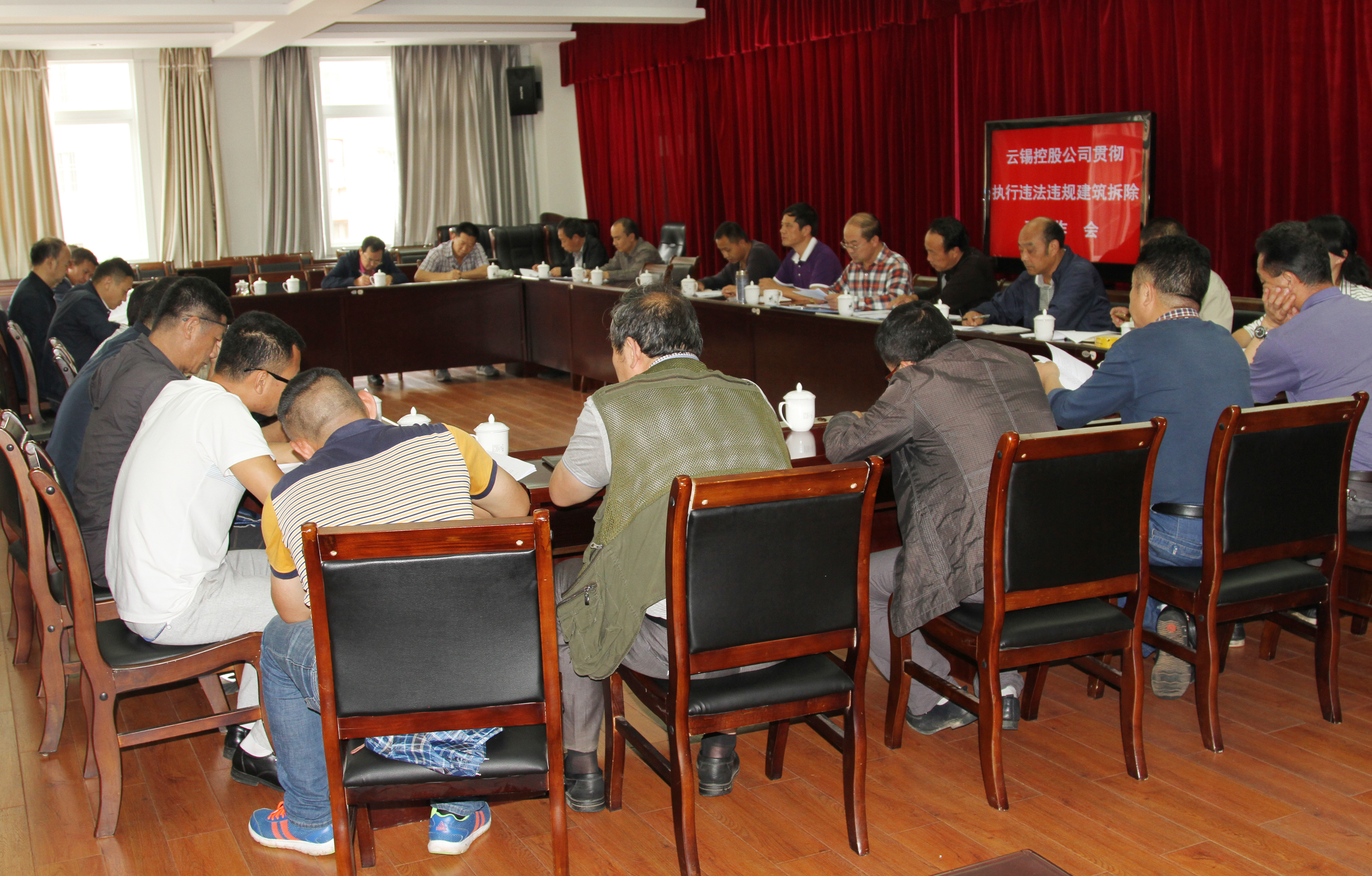 7月20日,云锡贯彻执行违法违规建筑拆除工作会在云锡广元公司第一会议室召开。广元公司总经理许祖英、个旧市规划局监察负责人师彪、广元公司相关部门人员,以及云锡所属相关单位该项工作负责人参加会议,全面启动违法违规建筑拆除工作。