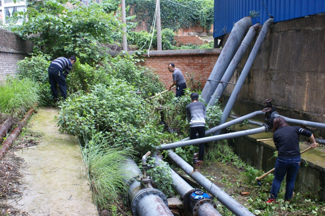 7月7、11、12日,供水一分公司党支部结合实际,组织党员同志开展了为期三天的义务劳动。厂区净化站生产池现场,在优秀共产党员何少平同志的带领下,大家纷纷撸起袖子、拖起黑皮水管对生产池内的淤泥进行冲洗。新冠净化站、乍甸七站水源头现场,党员同志们手持剪刀为树木修枝减叶,并使用割草机、锄头等工具清理杂草,在大家的共同努力下,站内环境焕然一新。