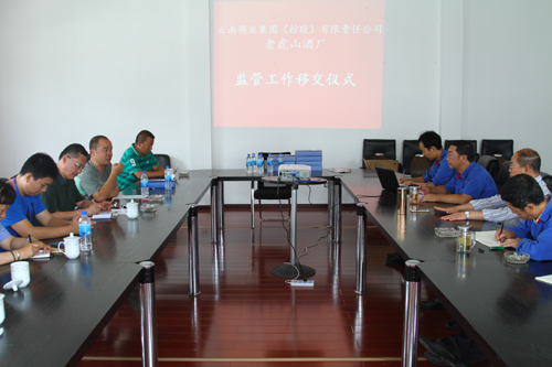 根据红食药监发﹝2017﹞91号文件《红河州食品药品监督管理局关于指定云南锡业集团(控股)有限责任公司老虎山酒厂管辖权限的通知》文件精神,近日,红河州食品药品监督管理局局长马春喜与个旧市市场监督管理局食品生产科科长钟刚等一行9人到老虎山酒厂召开了“老虎山酒厂监管工作移交会”并完成了相关移交手续。