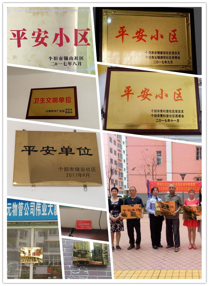 2017年以来,在个旧市城建、环卫和社区等相关部门的支持配合下,广元物管公司通过系列活动的开展,在提质服务、综合治理、环境卫生工作方面取得了长足进步,辖区整体面貌得到改善,住户满意度不断提升,先后有13个小区和楼院被云锡机关、储运、建设、青杉里等社区授予“平安小区”、“平安楼院”、“卫生文明楼院”等荣誉称号。