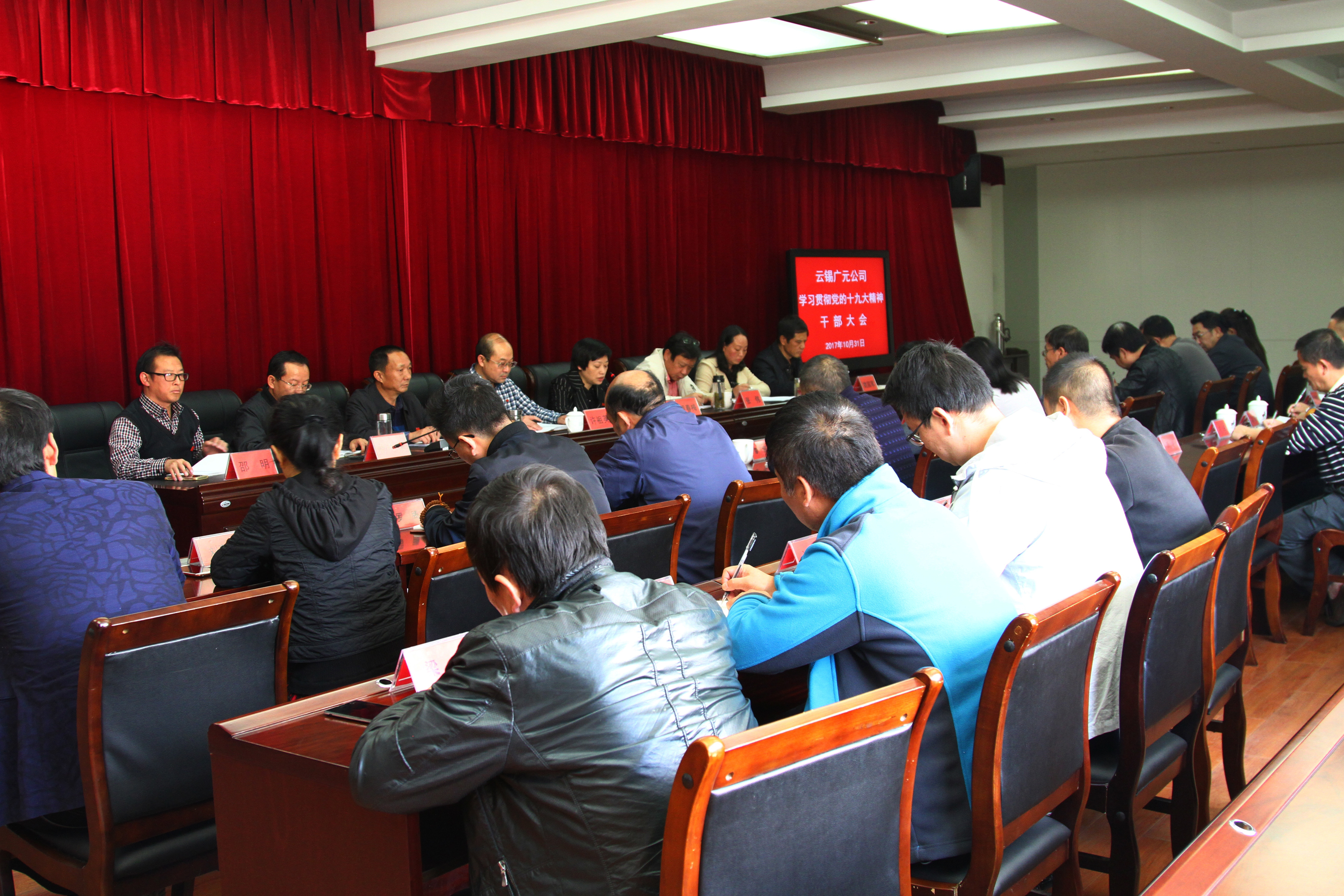 10月31日,广元公司召开干部大会,传达学习贯彻党的十九大精神以及张涛书记10月28日在控股公司传达学习贯彻十九大精神干部大会上的讲话精神。