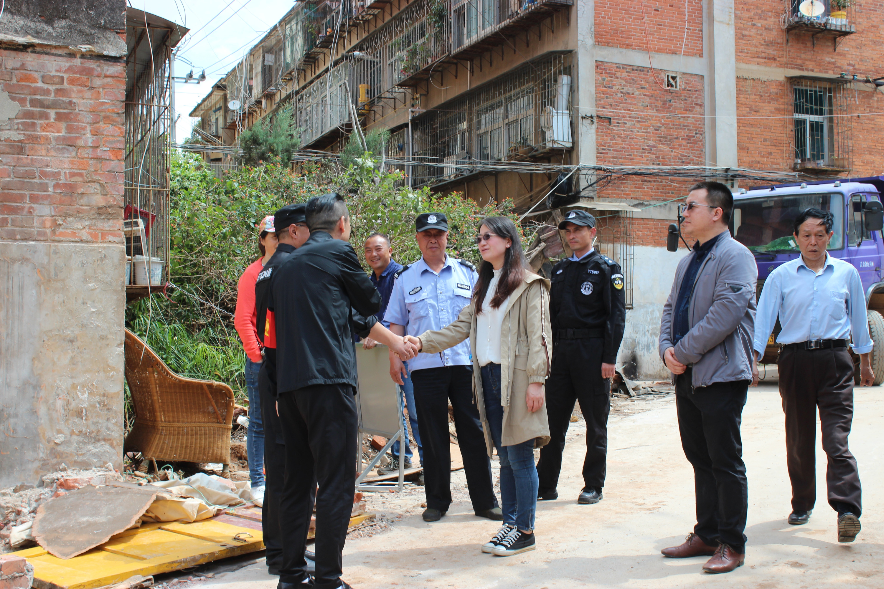 吴君先后实地查看了个旧选厂小区违章建筑拆除工作现场和锡苑小区物业施工现场,看望慰问了节日期间依然奋战在施工现场的干部员工,详细了解施工安全和工程质量的各项保障措施。广元公司党委书记、董事长、总经理许祖英,副总经理杨宏贤详细汇报了“三供一业”项目建设和违章建筑拆除工作进展情况以及下一步的工作思路。