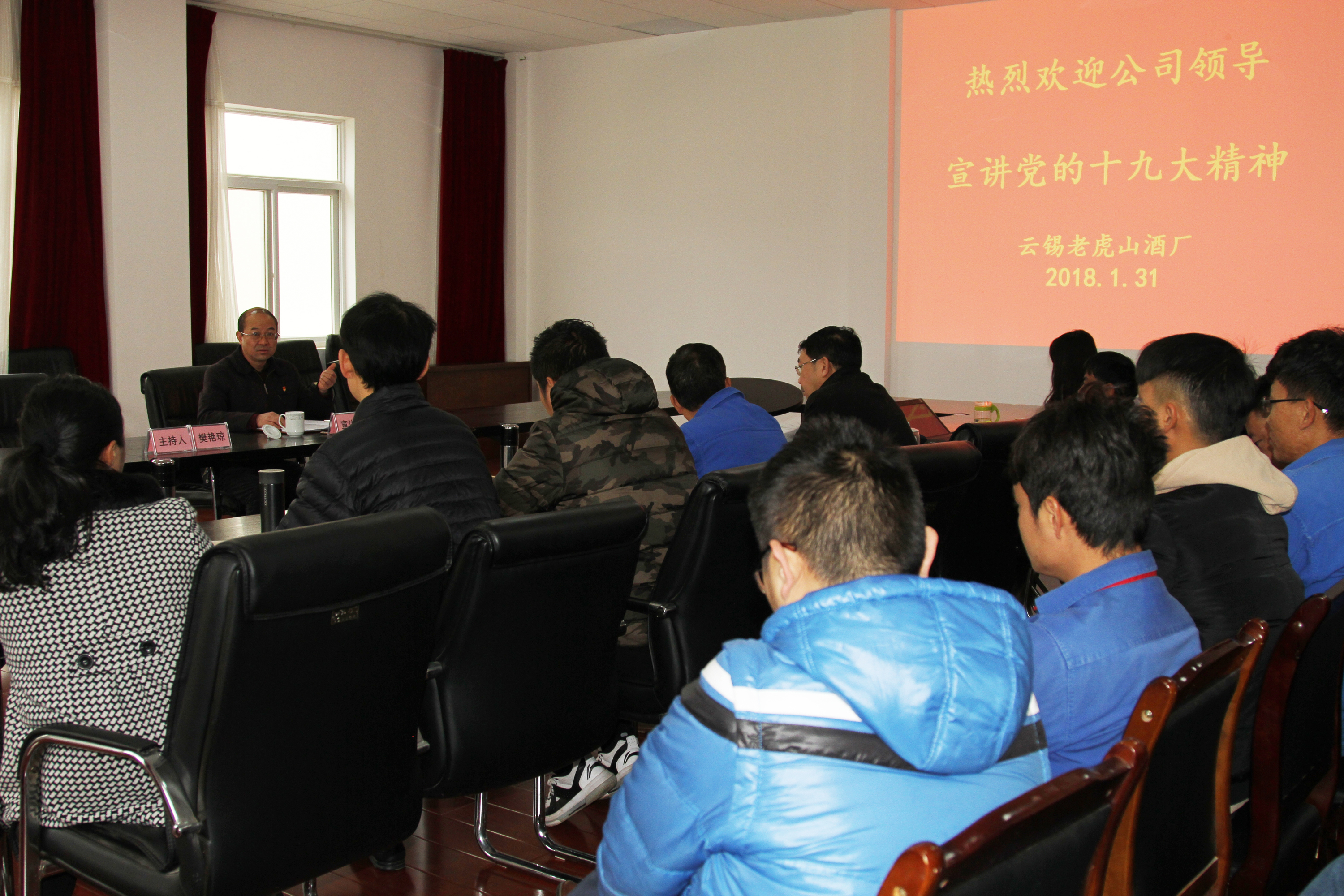 公司党委书记、董事长、总经理许祖英到老虎山酒厂党支部宣讲