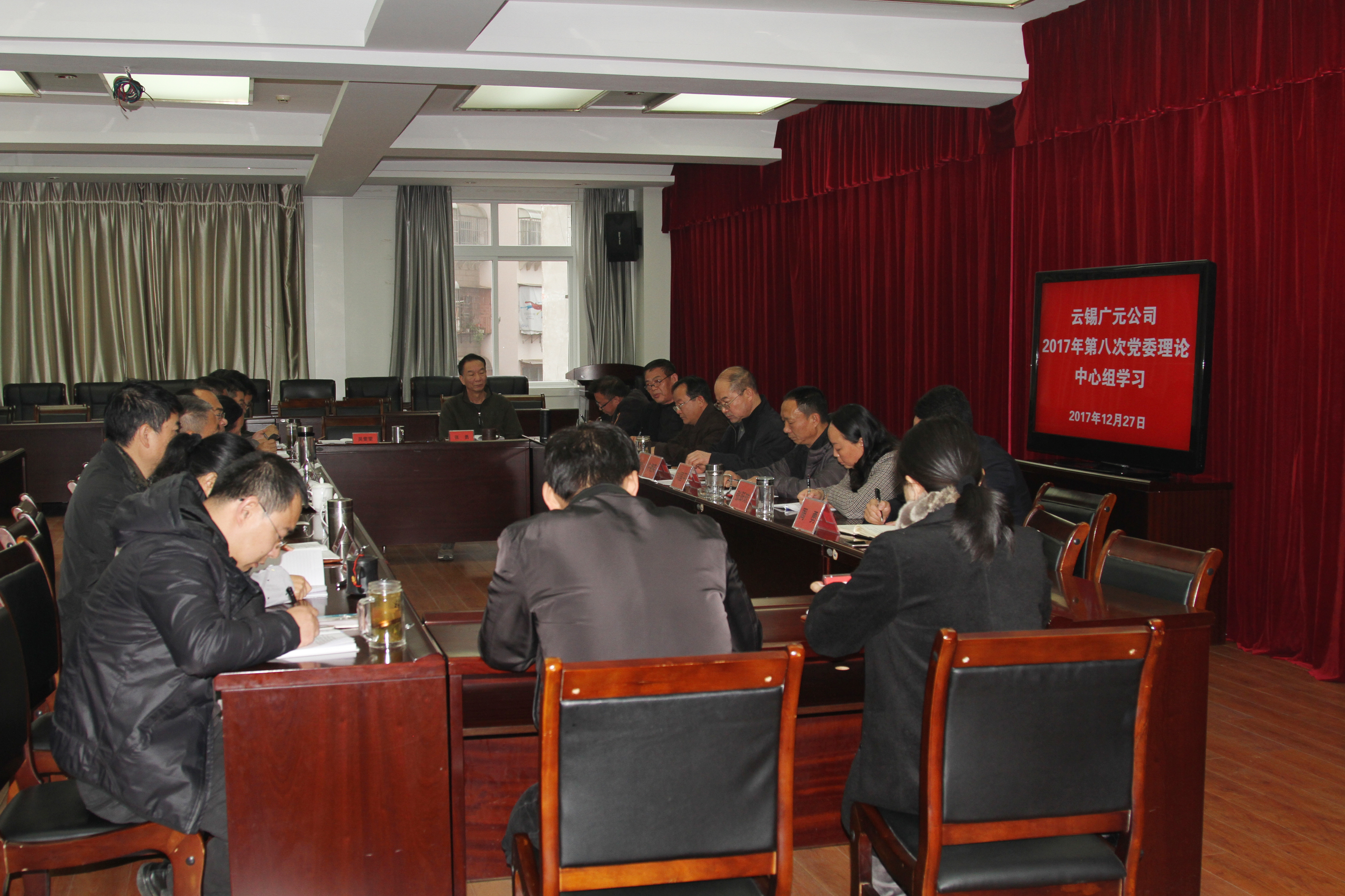 12月27日,广元公司党委组织召开2017年第八次中心组理论学习会议,专题围绕“全面贯彻党的十九大精神,坚定不移将改革推向深入”的中心主题进行学习研讨。会议由党委书记、董事长、总经理许祖英主持。