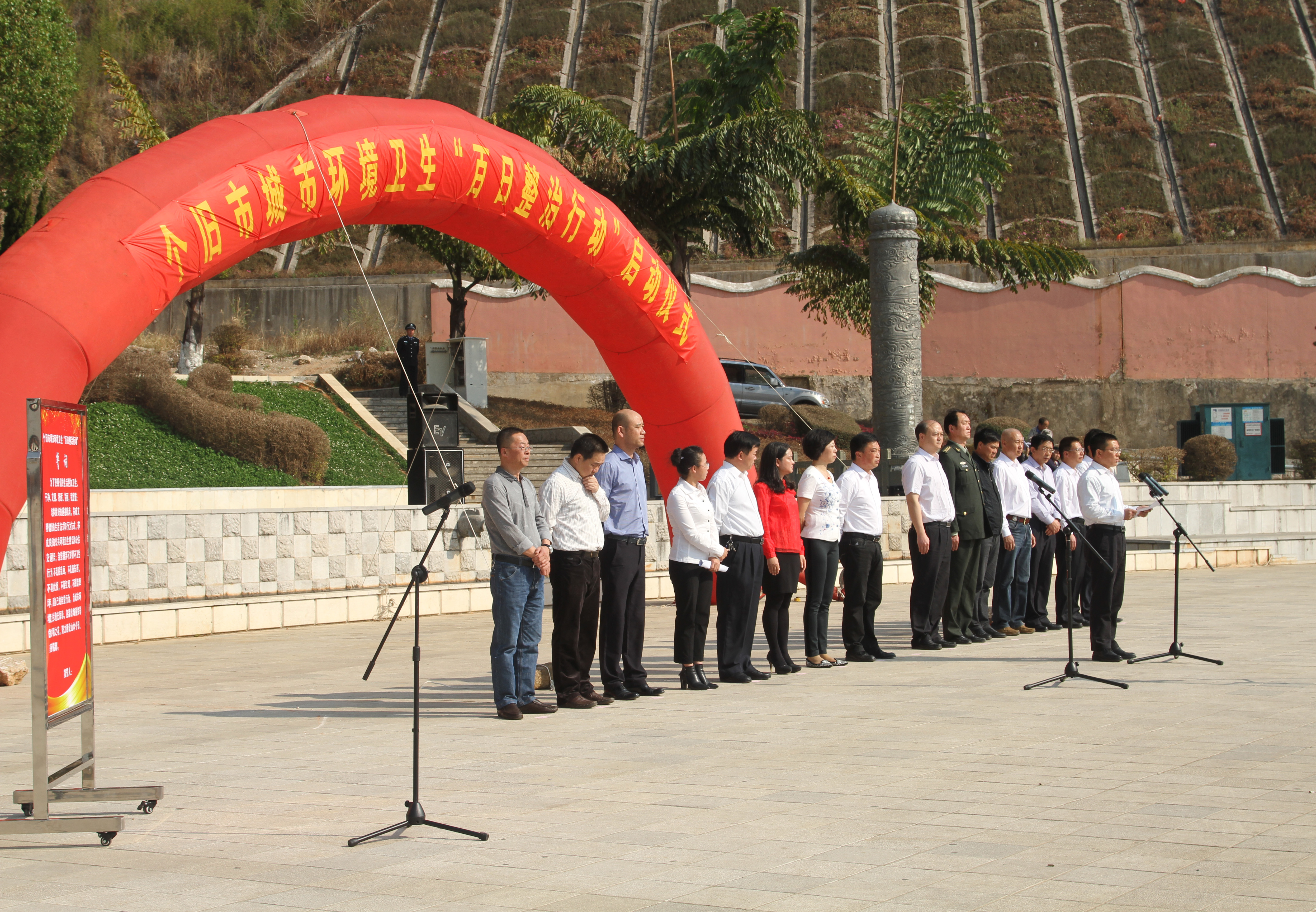 启动会上,个旧市市长毛宗晦作重要讲话,相关领导对“百日整治行动”活动方案作简要说明,云锡公司、城建监察、环卫、公安、卫生监督、青年志愿者、学生等代表进行了宣誓。
