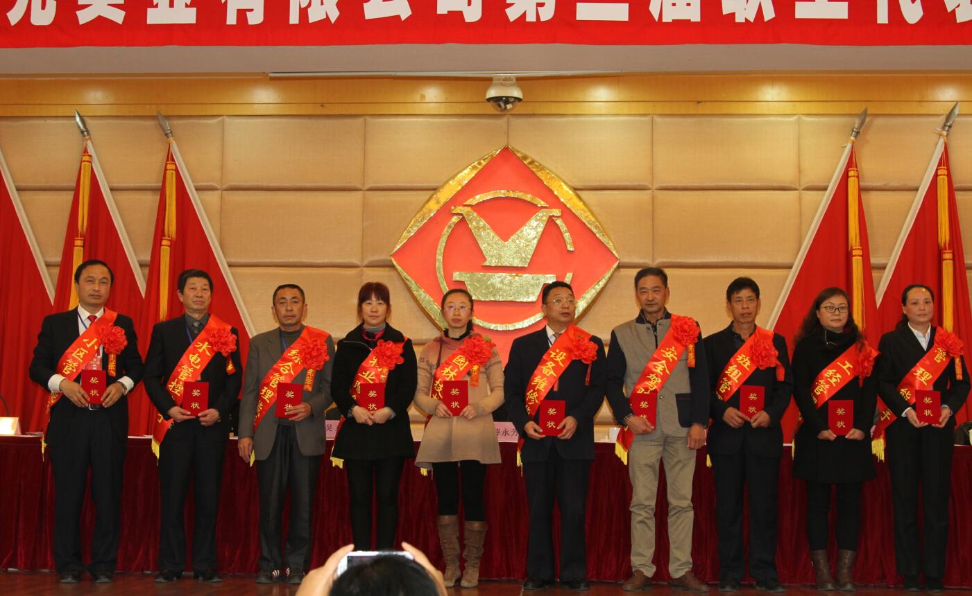 大会还进行了公司党政主要领导述职述廉以及对2015年度领导班子成员进行民主测评;表彰奖励了2015年度“优胜单位”、“工人先锋号”和“十佳能手”;签订了2016年党风建设和反腐倡廉工作、所属单位负责人经营业绩、消防安全目标管理责任书、《2016年安全生产责任状》以及《2016年工资集体协商协议书》等;审议通过了相关大会决议。