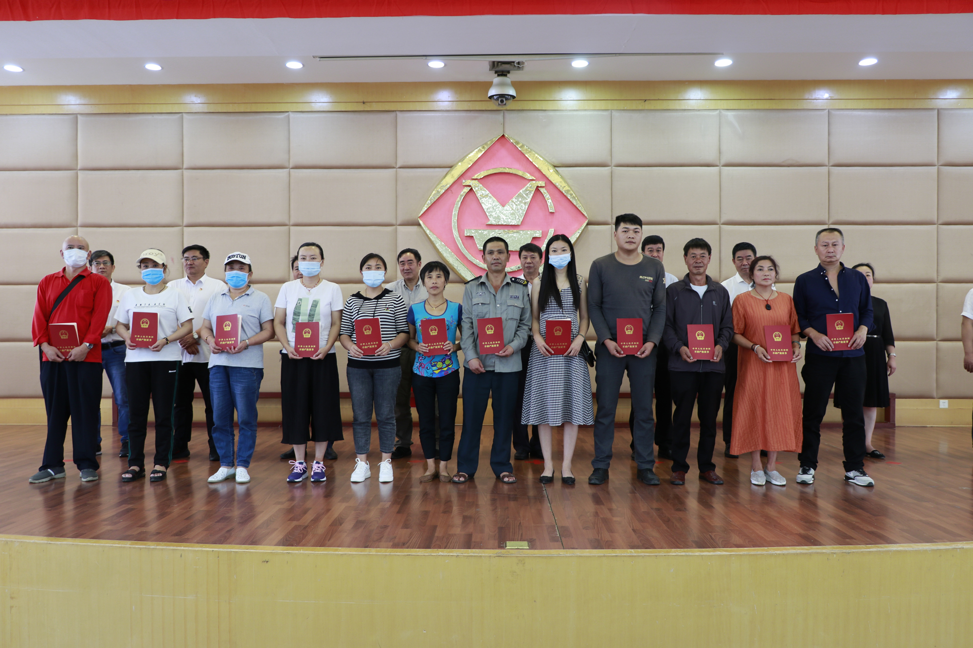 8月28日,云锡控股公司已售住房不动产权证发放仪式在云锡宾馆三楼报告厅举行,首批领证的60名住户代表从云锡控股公司党委书记、董事长张涛,云锡控股公司党委副书记、副董事长、总经理程睿涵,个旧市委书记沈焕然等领导手中接过期盼已久的不动产权证书,标志着云锡已售住房不动产证办理这一沉积多年的历史遗留问题得到有效解决。