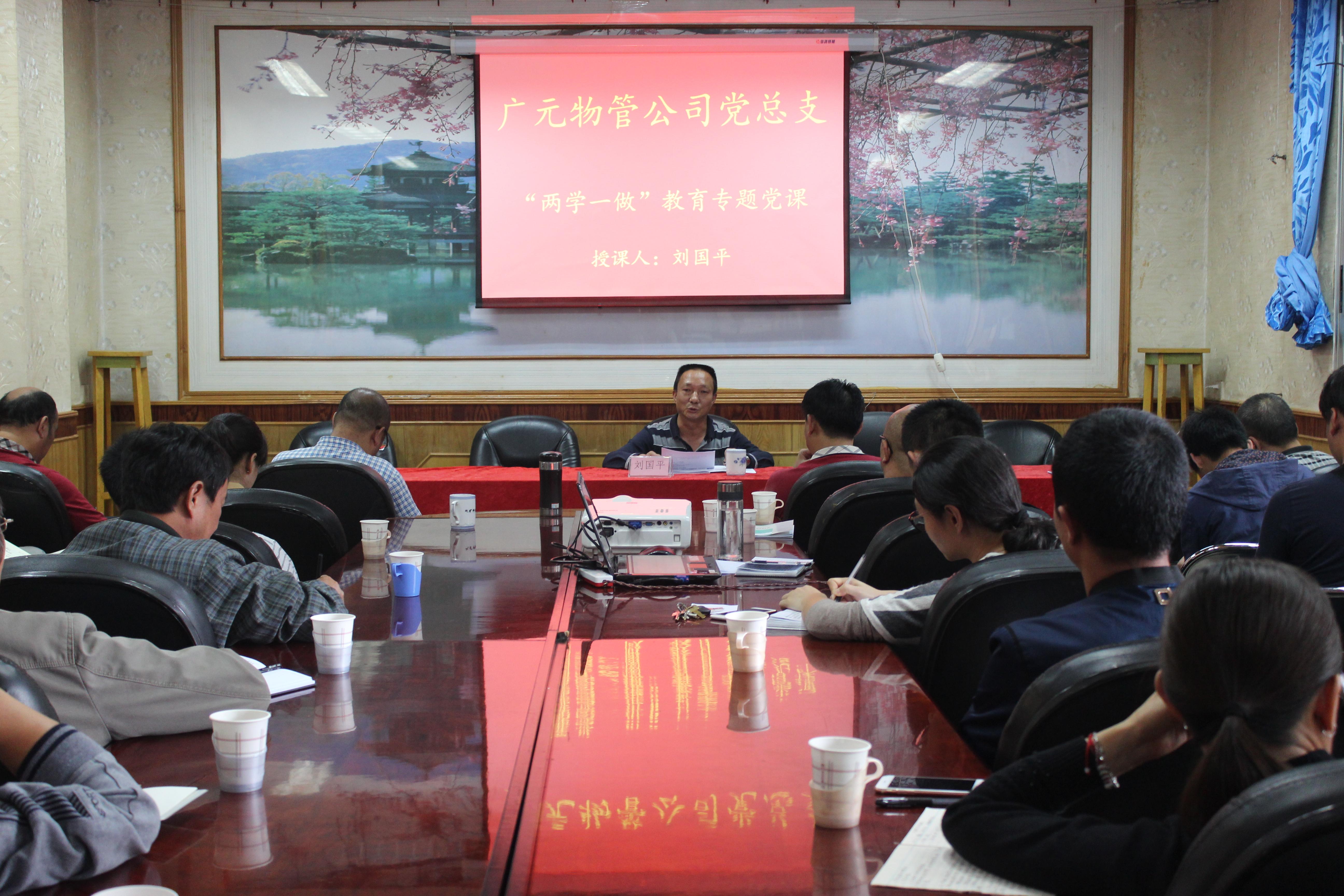 9月30日,广元公司党委副书记、工会主席刘国平到广元物管公司,以《践行“两学一做”,推进广元发展》为题上了一堂生动实用而富有教育意义的专题党课。广元物管部分党员干部、入党积极分子代表到会聆听。