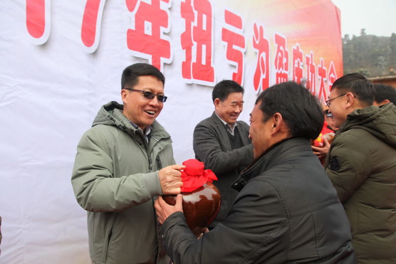 2018年1月11日,冬日里的老厂锣鼓喧天、鞭炮齐鸣、喜气洋洋,带着云锡控股公司党委、控股公司的深情厚谊和亲切关怀,控股公司党委副书记、副董事长、总经理李刚亲率两级公司领导,满载36坛老虎山美酒和18头福猪齐聚老厂灯光球场,热热闹闹、红红火火地为老厂分公司2017年实现扭亏为盈攻坚目标庆功祝贺。那天,一个个喜悦的云锡人都沉醉在了飘香四溢的美酒中......