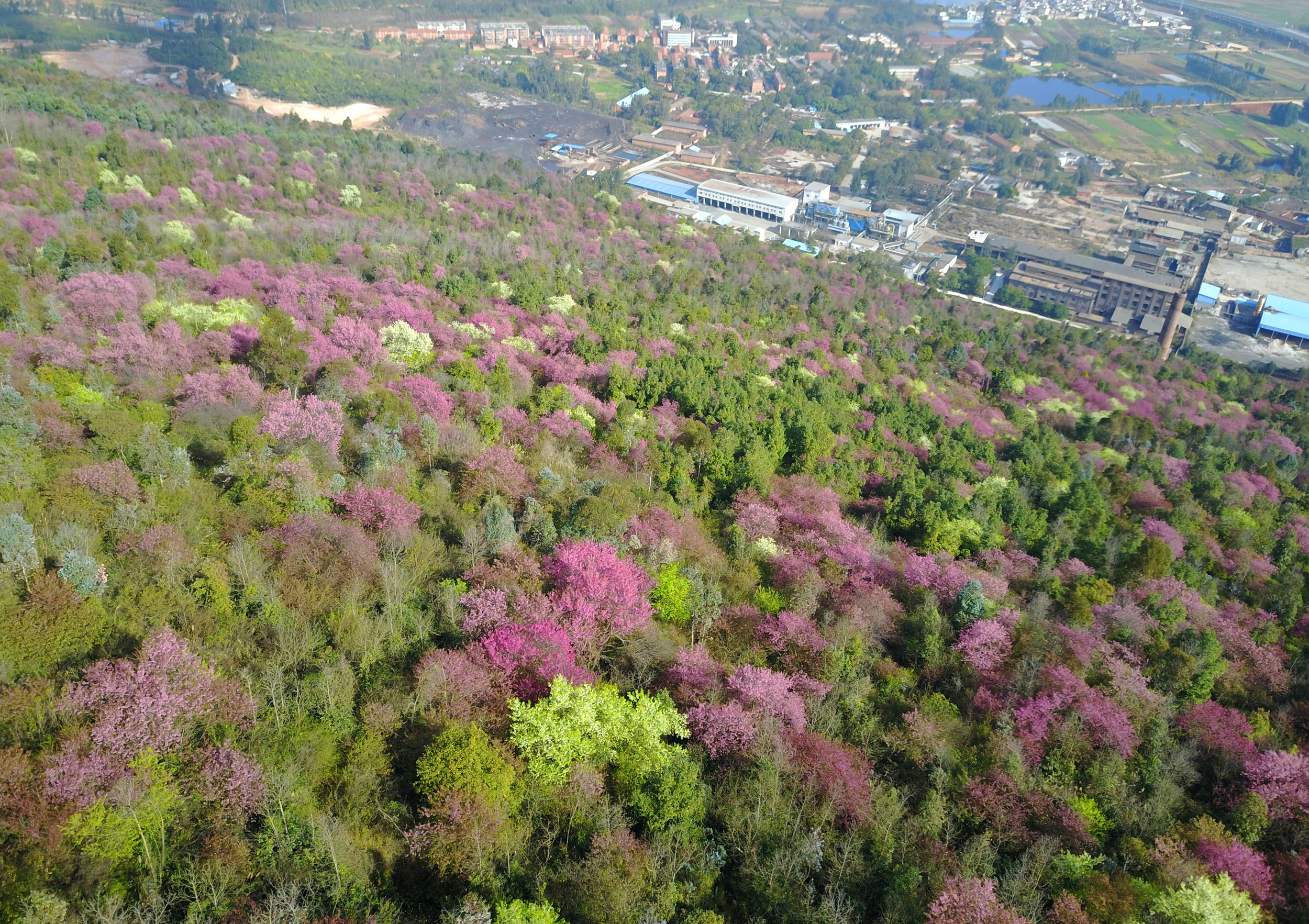 2018年初春,云锡白沙冲三千公顷的樱花林乘着改革的春风,在一片绿海中独放异彩,给人欣喜,孕育生机……