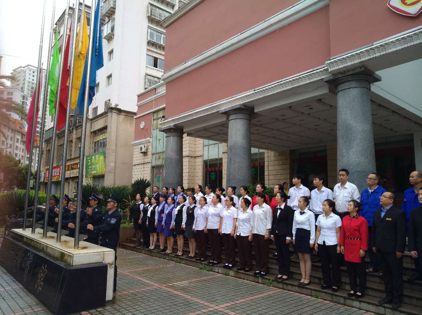 8月1日,云锡宾馆全体员工统一换上新工装参加升旗仪式。