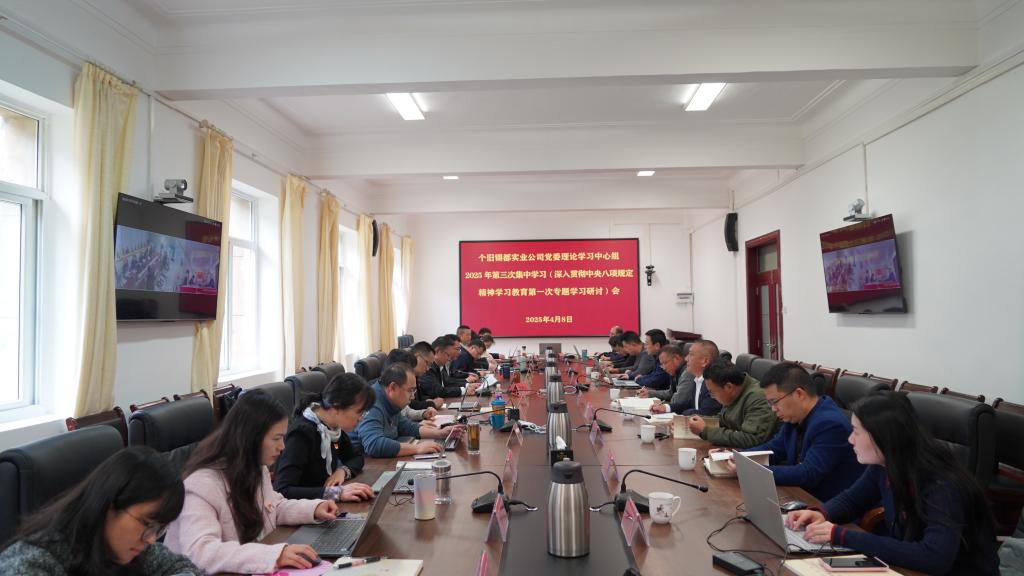 为贯彻落实党的二十届三中全会部署,巩固拓展学习贯彻习近平新时代中国特色社会主义思想主题教育成果,巩固深化党纪学习教育成果,锲而不舍落实中央八项规定精神,推进作风建设常态化长效化。4月8日,锡都实业公司党委在个旧总部127会议室,举行深入贯彻中央八项规定精神学习教育读书班开班暨理论学习中心组2025年第三次集中学习(深入贯彻中央八项规定精神学习教育第一次专题学习研讨)会。