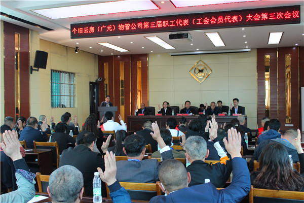 3月16日,云房(广元)物管公司召开第三届第三次职工代表暨工会会员代表大会。党总支书记罗腾主持大会,46名正式代表、1名列席代表参会。