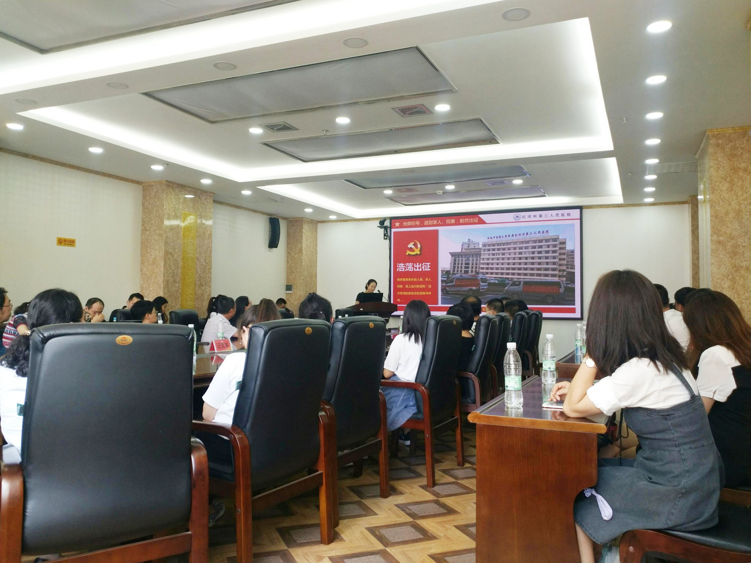 个旧市传染病医院援鄂医疗队队员汪雪英、红河州第三人民医院援鄂医疗队队员吕佩颖两位医生讲述了他们在支援湖北疫情防控主战场,与冠状病毒较量、与死神赛跑、抢救生命、守护健康和平安的过程中那一个个感人的故事,动人的场景。当听到医院几乎把所有紧缺的医疗防护物资都交给援鄂医疗队员带往湖北的时候,大家感受到了全国上下众志成城、共克时艰抗击疫情的决心与勇气;当听到在隔离病房和重症监护室里发生的一幕幕感人场景,大家在为医护人员无私奉献、勇敢逆行的壮举所感动的同时,也感受到了我们国人在面对灾难面前特有的坚强、乐观和互助精神;在听到湖北疫情防控阻击战取得阶段性胜利,抗疫英雄们凯旋而归的时候,大家真切感受到了伟大祖国的强大,更加坚定了坚持中国共产党的领导,坚定不移走中国特色社会主义道路的信心和决心。