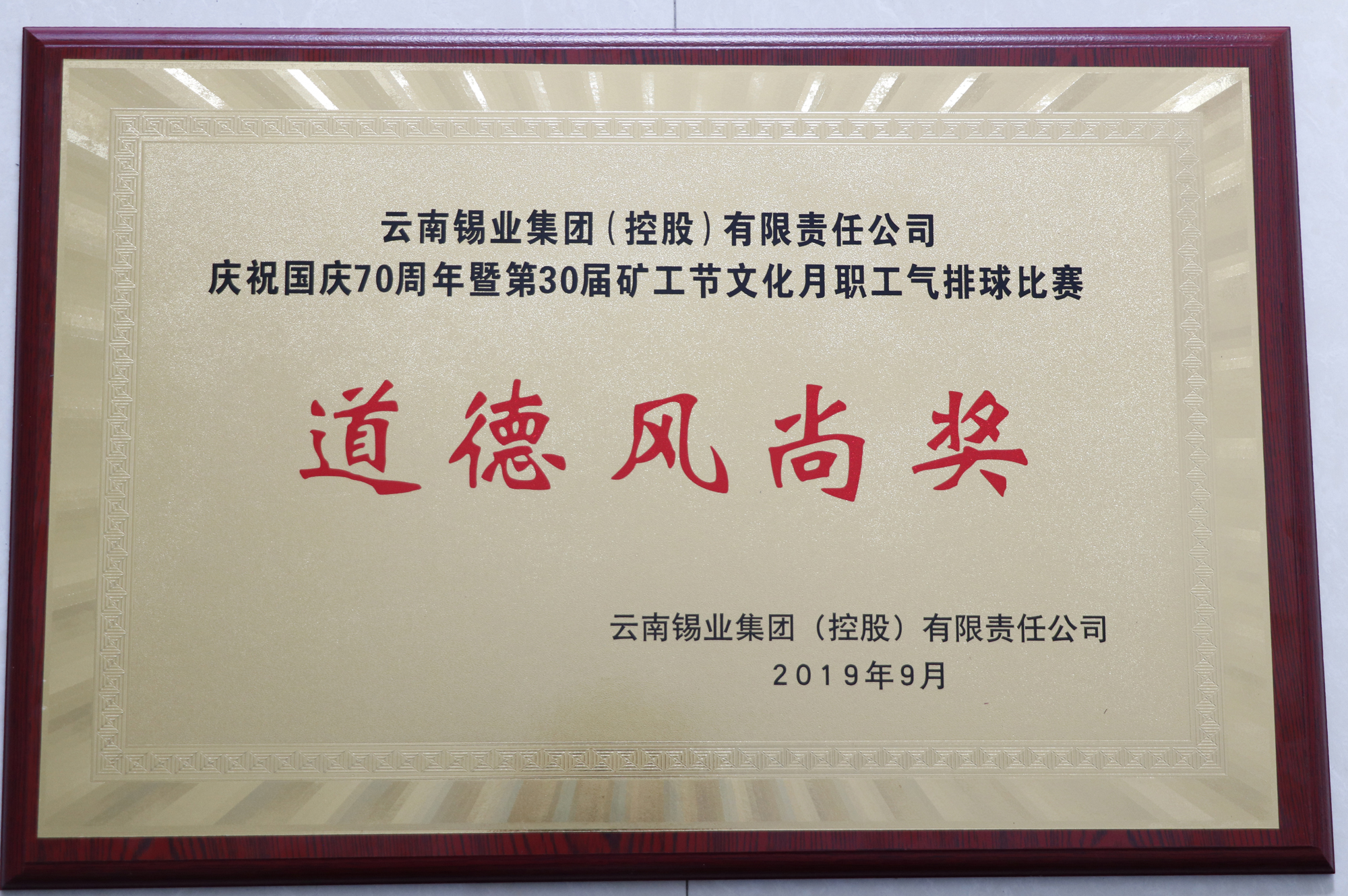 9月2日,广元公司组织职工参加控股公司庆祝中华人民共和国成立70周年暨云锡矿工节·文化月30周年气排球比赛,充分发扬“友谊第一,比赛第二”的风格,荣获道德风尚奖。