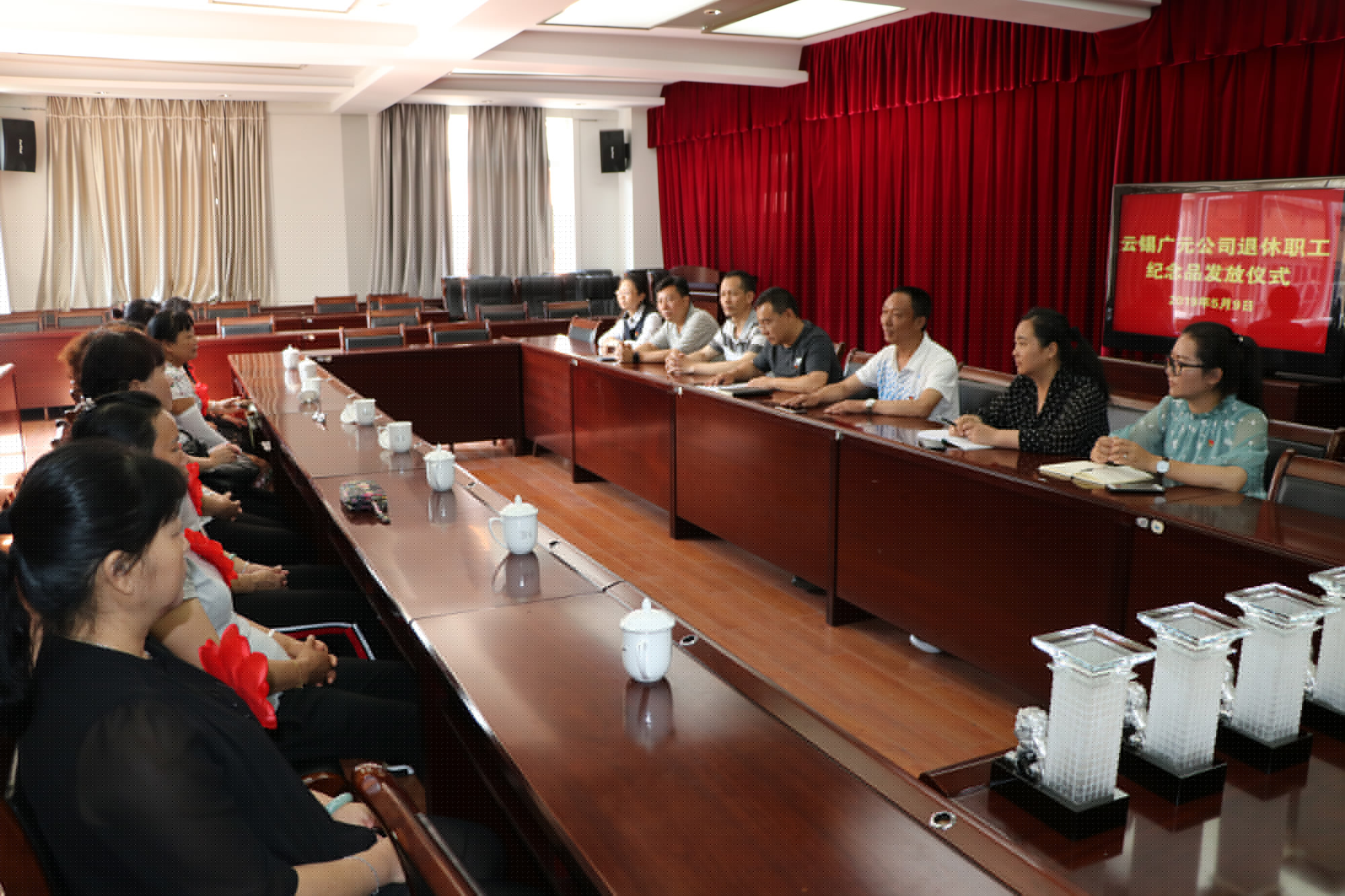 5月9日,广元公司举行退休职工纪念品发放仪式,广元公司党委副书记、工会主席刘国平等领导与2019年一季度退休的8名员工深入交流座谈。