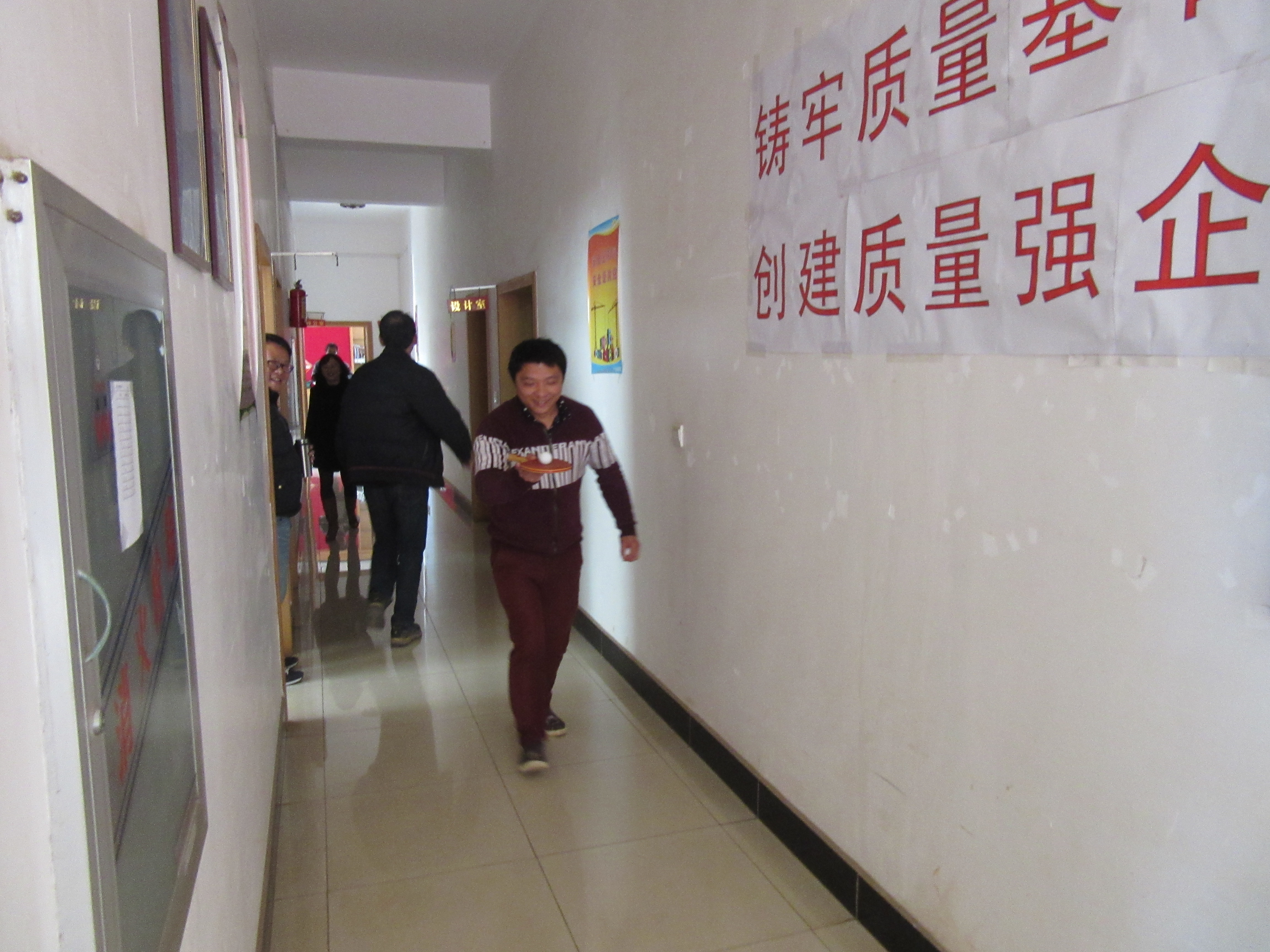 比赛将公司员工分为四组,大家互相抽签随机决定组员。确定组员后,分别进行了“你比我猜”、“抬乒乓球”、“射飞镖”三个项目比赛,以最先完成所有项目且耗时最短一组为胜。比赛过程中,大家积极踊跃参与,使出浑身的力气,尽量让自己不拖小组的后腿。整个比赛气氛一片热烈,欢声笑语,其乐融融,洋溢着浓浓的年味。
