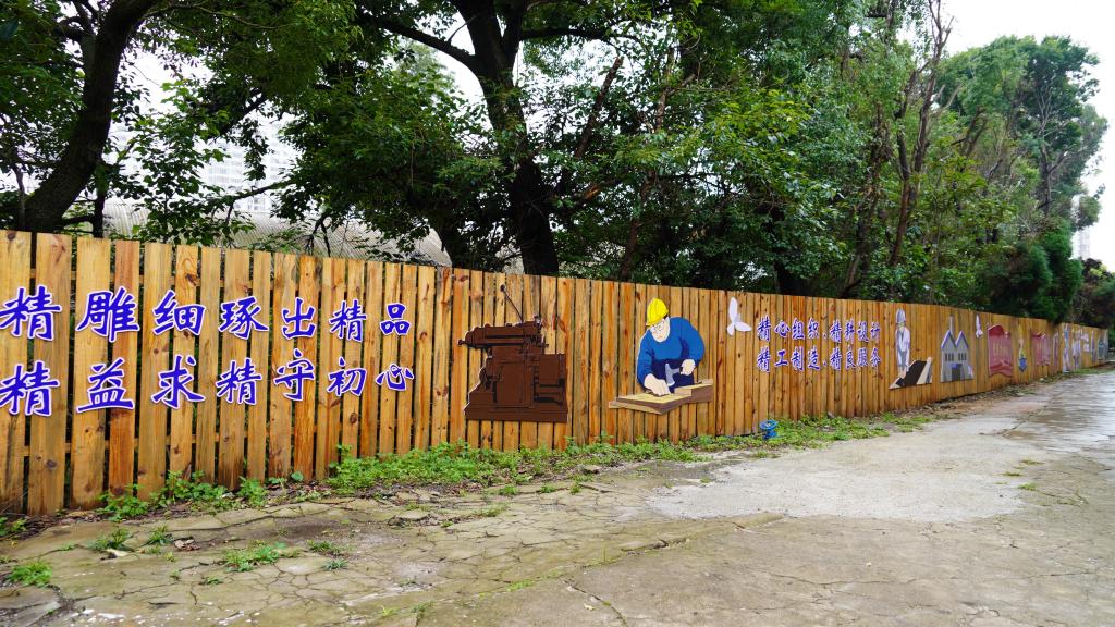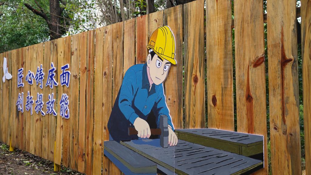 活动现场,志愿者们分工协作,调色、填色、勾线环环相扣,用画笔将创意落于实处。历经两周精心创作,原本“素颜”的木栅栏蜕变为“文化走廊”,摇床车间发展历程的刨床、不同时期的工人奋斗群像、摇床成品工艺图等元素被艺术化呈现。